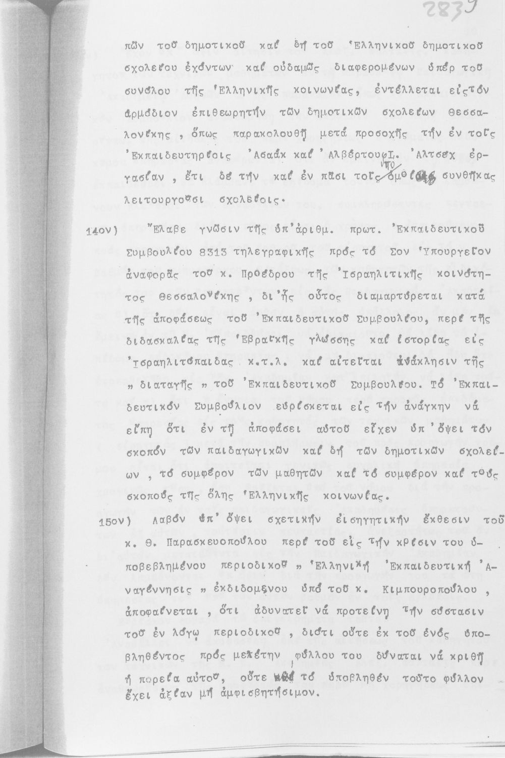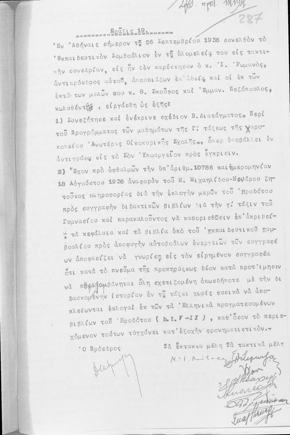 Κωδικός αναγνώρισης: 1935-0011 Τίτλος: ΕΚΠΑΙΔΕΥΤΙΚΟ ΣΥΜΒΟΥΛΙΟ ΠΡΑΚΤΙΚΑ ΟΛΟΜΕΛΕΙΑΣ /ΠΡΑΚΤΙΚΑ ΟΛΟΜΕΛΕΙΑΣ Μέγεθος και υπόστρωμα: Πρακτικά αεσ, 368 σελίδες. |