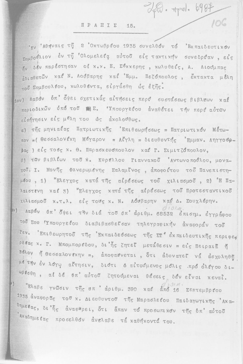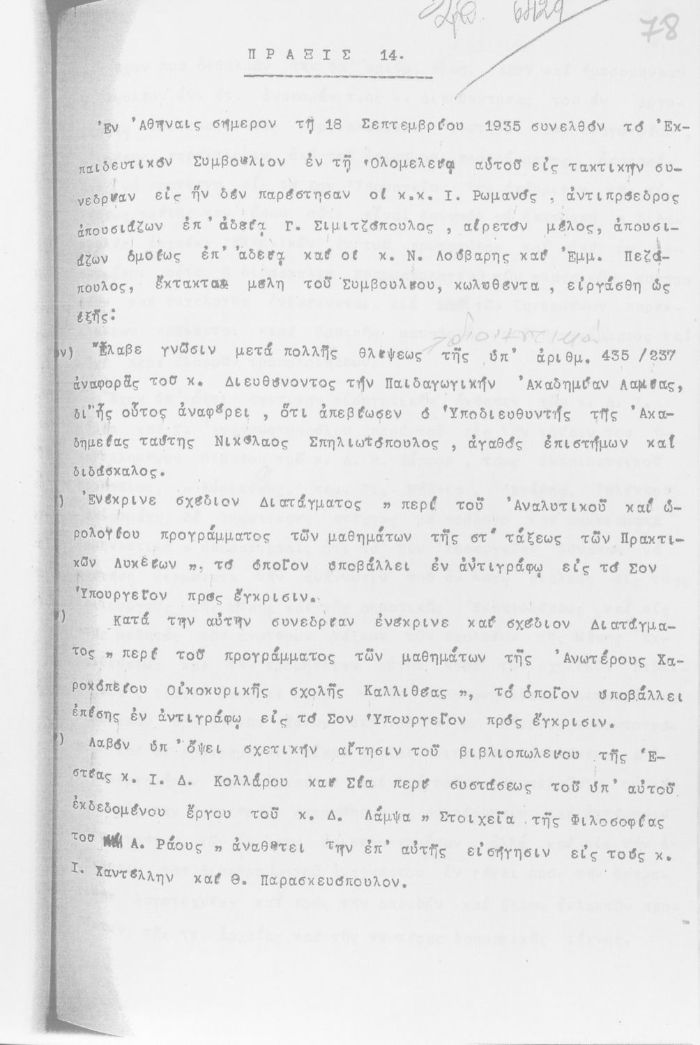 Κωδικός αναγνώρισης: 1935-0011 Τίτλος: ΕΚΠΑΙΔΕΥΤΙΚΟ ΣΥΜΒΟΥΛΙΟ ΠΡΑΚΤΙΚΑ ΟΛΟΜΕΛΕΙΑΣ /ΠΡΑΚΤΙΚΑ ΟΛΟΜΕΛΕΙΑΣ Μέγεθος και υπόστρωμα: Πρακτικά αεσ, 368 σελίδες. |