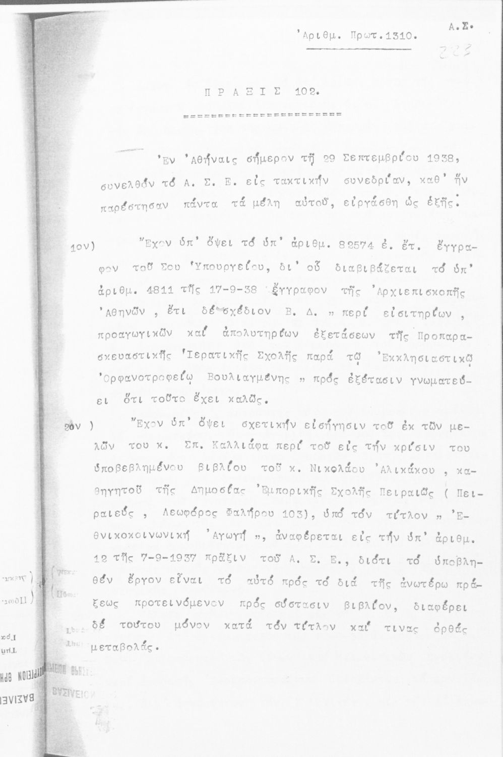 [1938, Τόμος Β, Τεύχος Α Έκδοση]