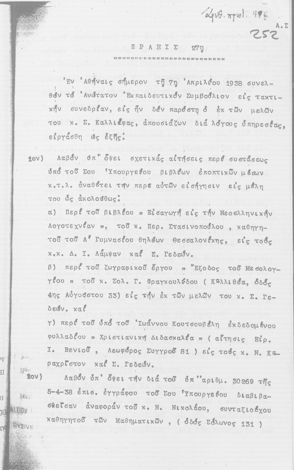 [1938, Τόμος Α, Τεύχος Α Έκδοση]
