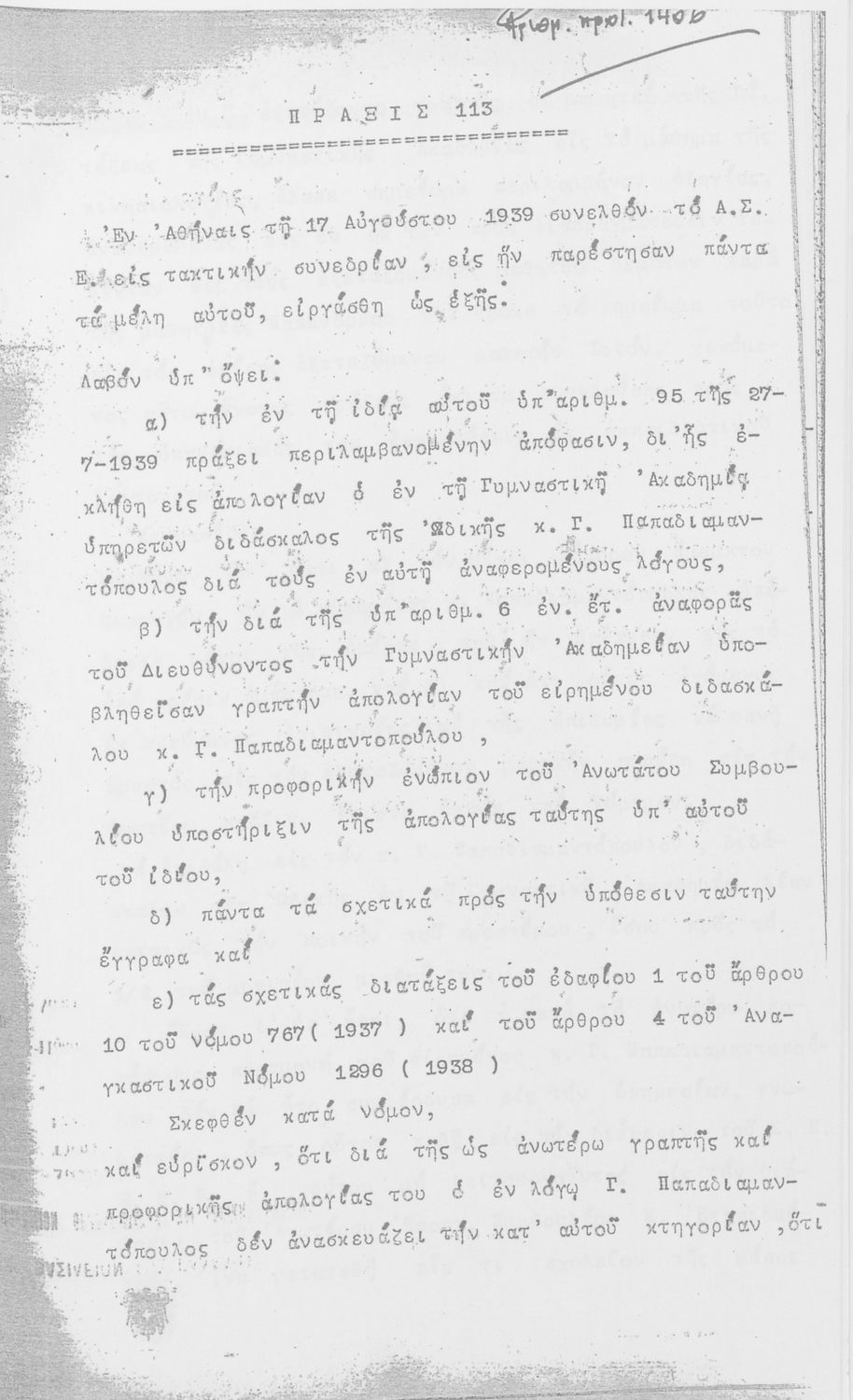 [1939, Τόμος Β, Τεύχος Α Έκδοση]