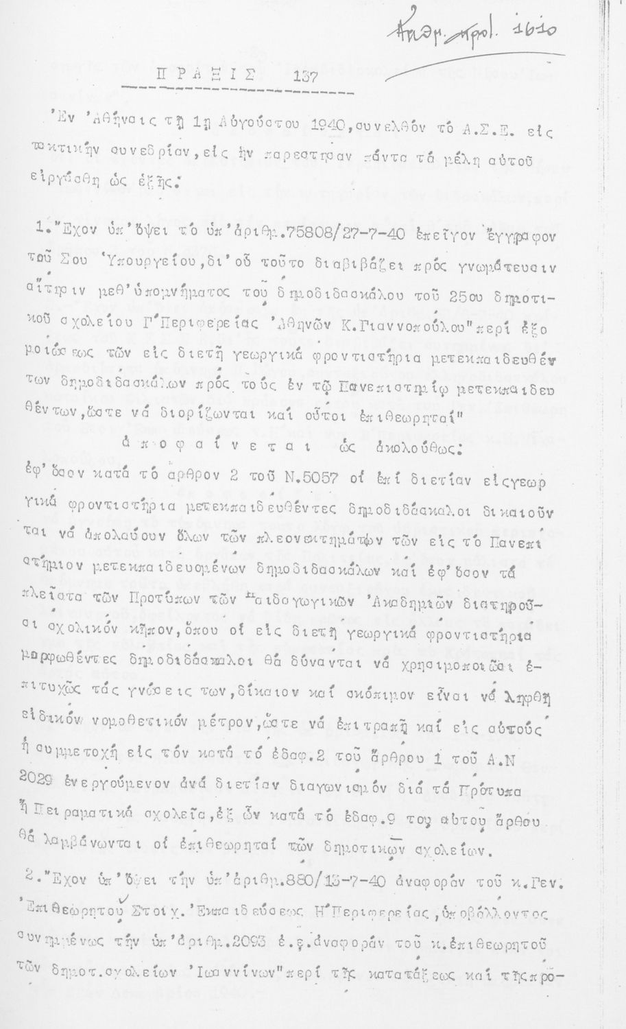 [1940, Τόμος B, Τεύχος Α Έκδοση]