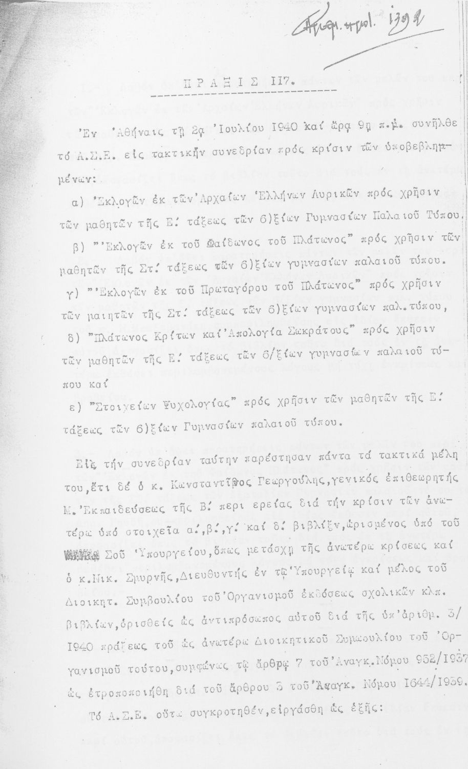 [1940, Τόμος B, Τεύχος Α Έκδοση]
