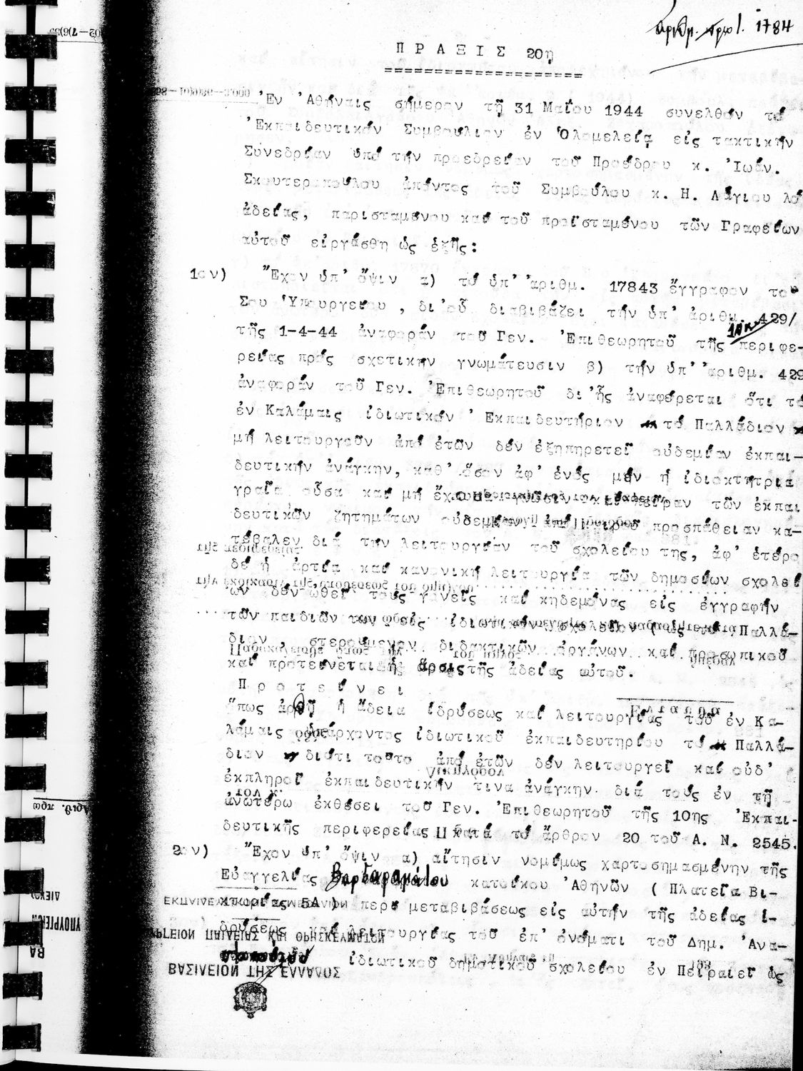 Κωδικός αναγνώρισης: 1944-0030 Τίτλος: ΠΡΑΚΤΙΚΑ ΟΛΟΜΕΛΕΙΑΣ ΕΚΠΑΙΔΕΥΤΙΚΟΥ ΣΥΜΒΟΥΛΙΟΥ Μέγεθος και υπόστρωμα: Πρακτικά αεσ, 313 σελίδες. |