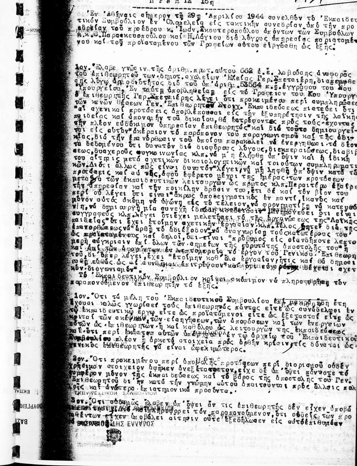 Κωδικός αναγνώρισης: 1944-0030 Τίτλος: ΠΡΑΚΤΙΚΑ ΟΛΟΜΕΛΕΙΑΣ ΕΚΠΑΙΔΕΥΤΙΚΟΥ ΣΥΜΒΟΥΛΙΟΥ Μέγεθος και υπόστρωμα: Πρακτικά αεσ, 313 σελίδες. |