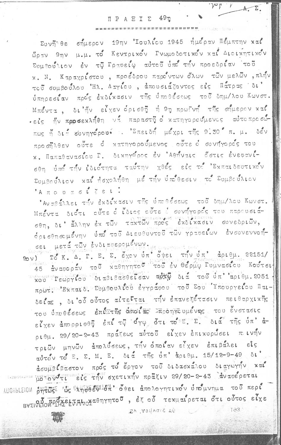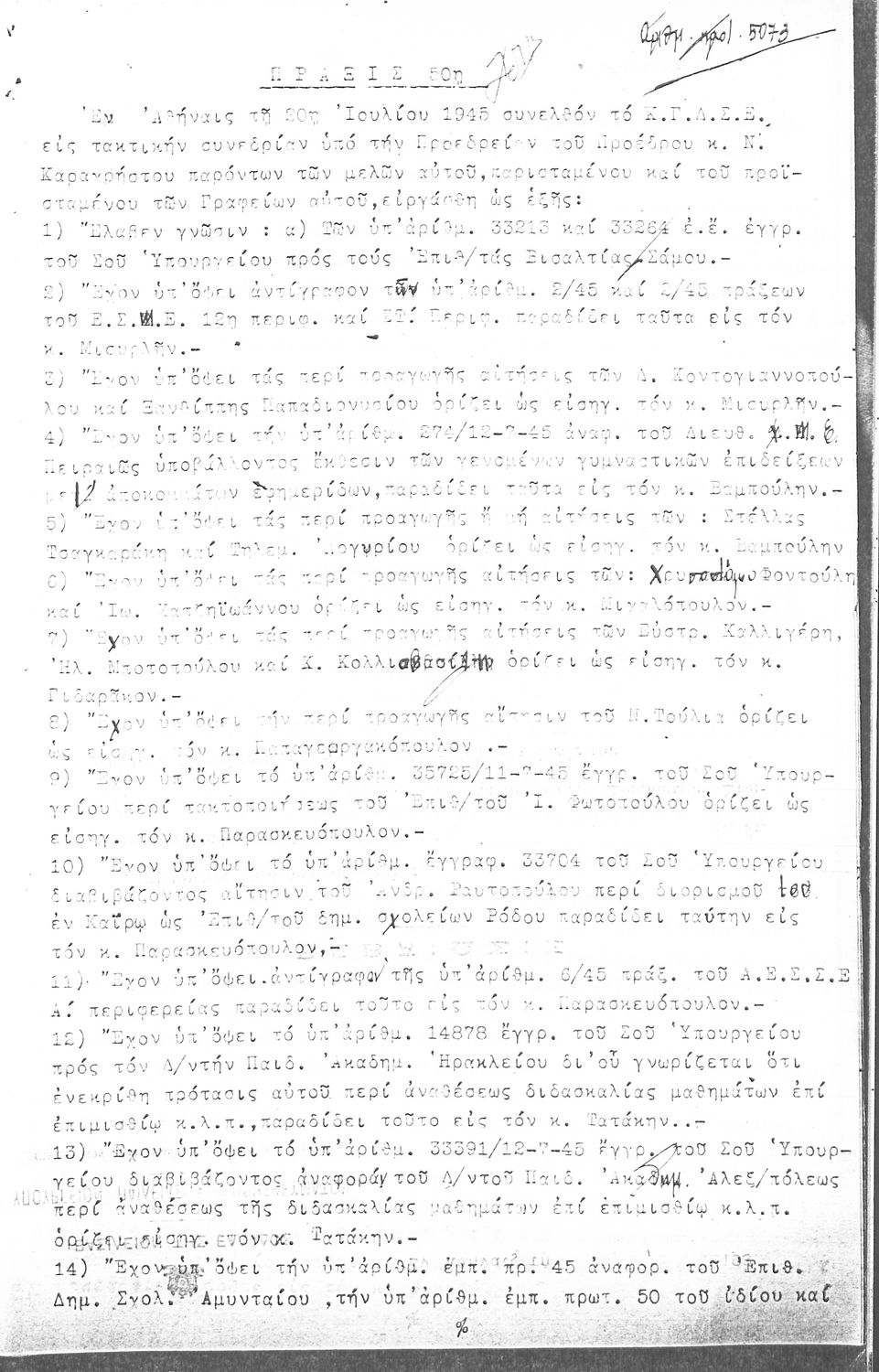 Κωδικός αναγνώρισης: 1945-0032 Τίτλος: ΠΡΑΚΤΙΚΑ ΟΛΟΜΕΛΕΙΑΣ ΕΚΠΑΙΔΕΥΤΙΚΟΥ ΣΥΜΒΟΥΛΙΟΥ Μέγεθος και υπόστρωμα: Πρακτικά αεσ, 247 σελίδες. |