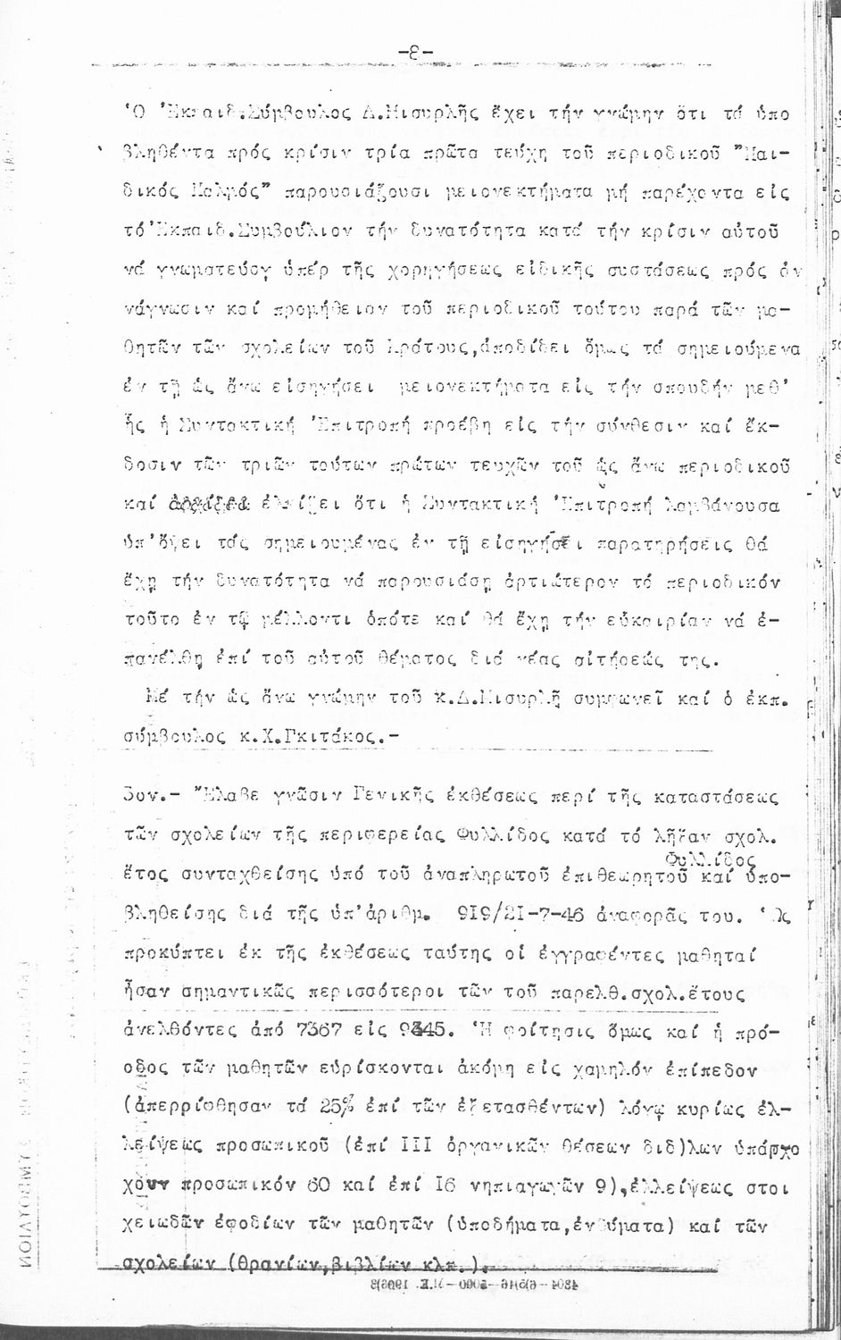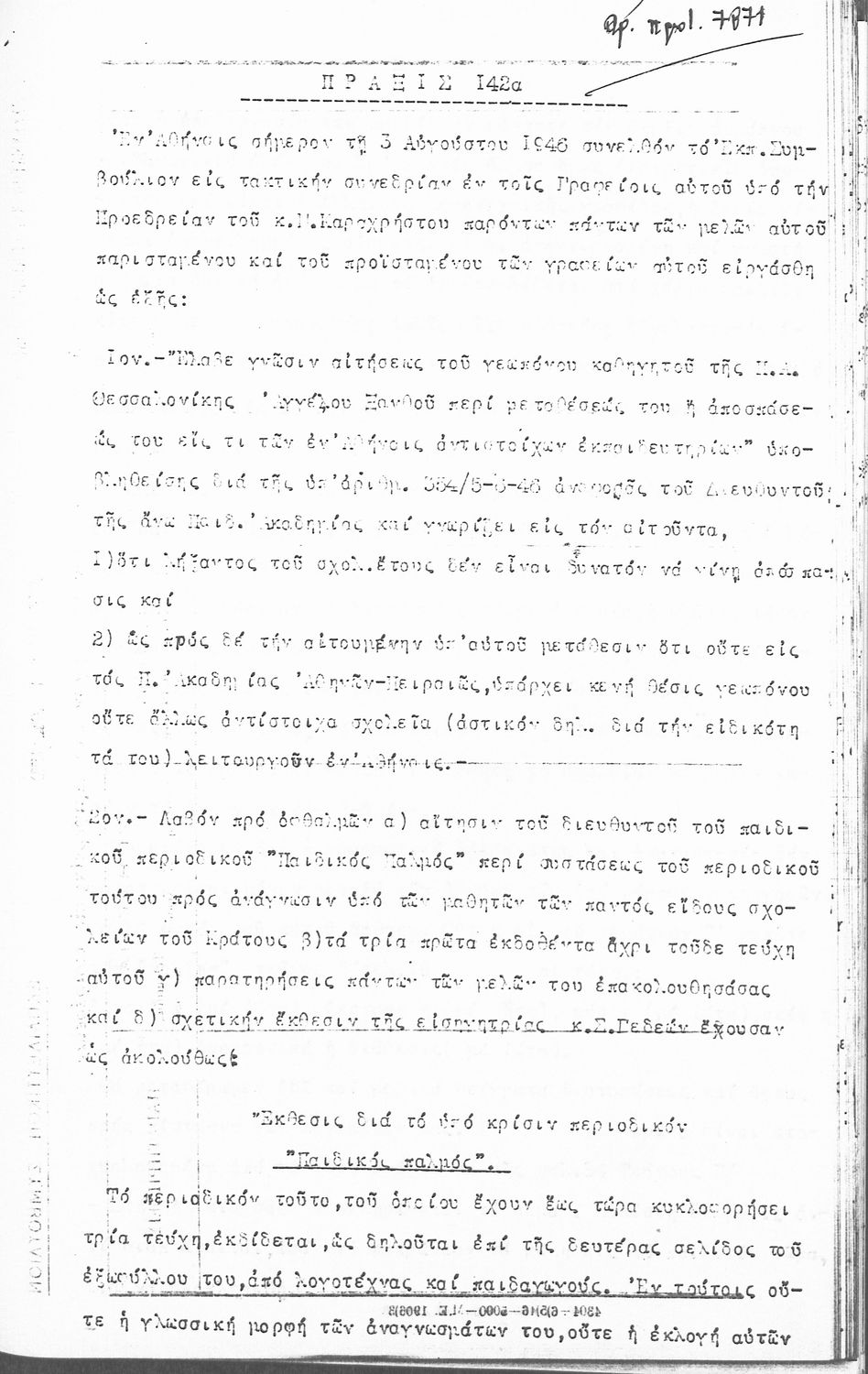 Κωδικός αναγνώρισης: 1946-0038 Τίτλος: ΠΡΑΚΤΙΚΑ ΕΚΠΑΙΔΕΥΤΙΚΟΥ ΣΥΜΒΟΥΛΙΟΥ Μέγεθος και υπόστρωμα: Πρακτικά αεσ, 344 σελίδες. |