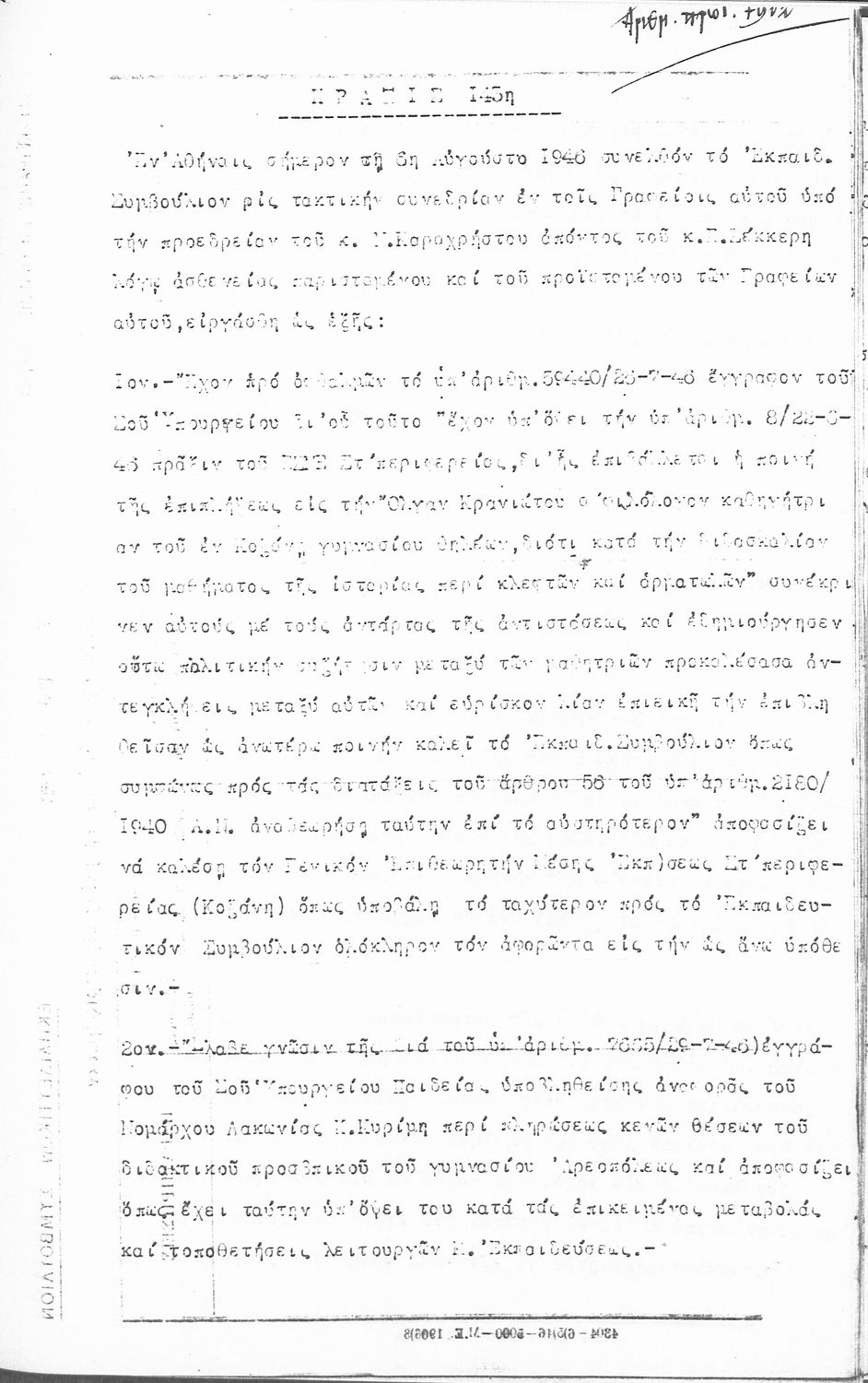 Κωδικός αναγνώρισης: 1946-0038 Τίτλος: ΠΡΑΚΤΙΚΑ ΕΚΠΑΙΔΕΥΤΙΚΟΥ ΣΥΜΒΟΥΛΙΟΥ Μέγεθος και υπόστρωμα: Πρακτικά αεσ, 344 σελίδες. |
