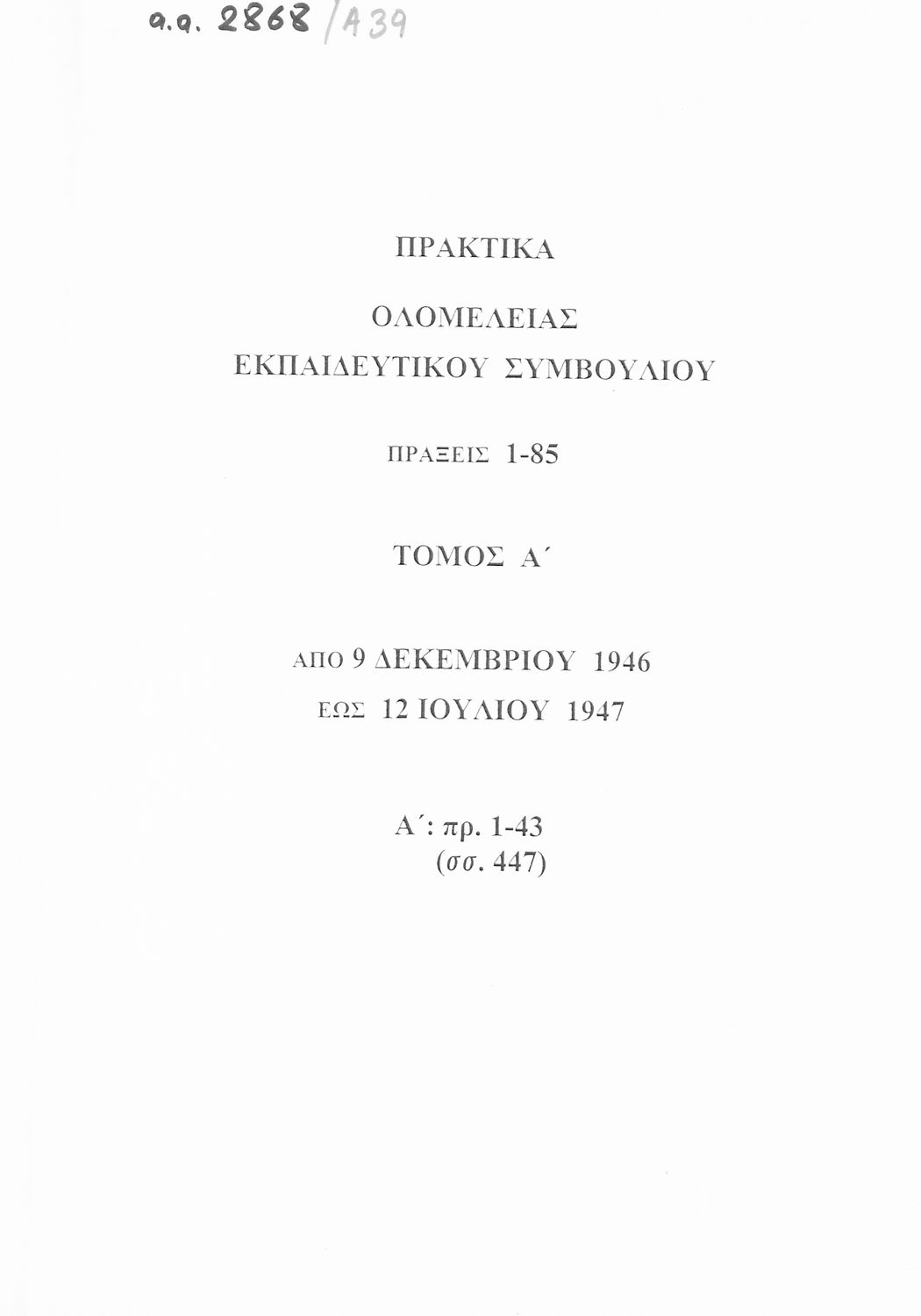 [1946, Τόμος Α, Τεύχος Α Έκδοση]