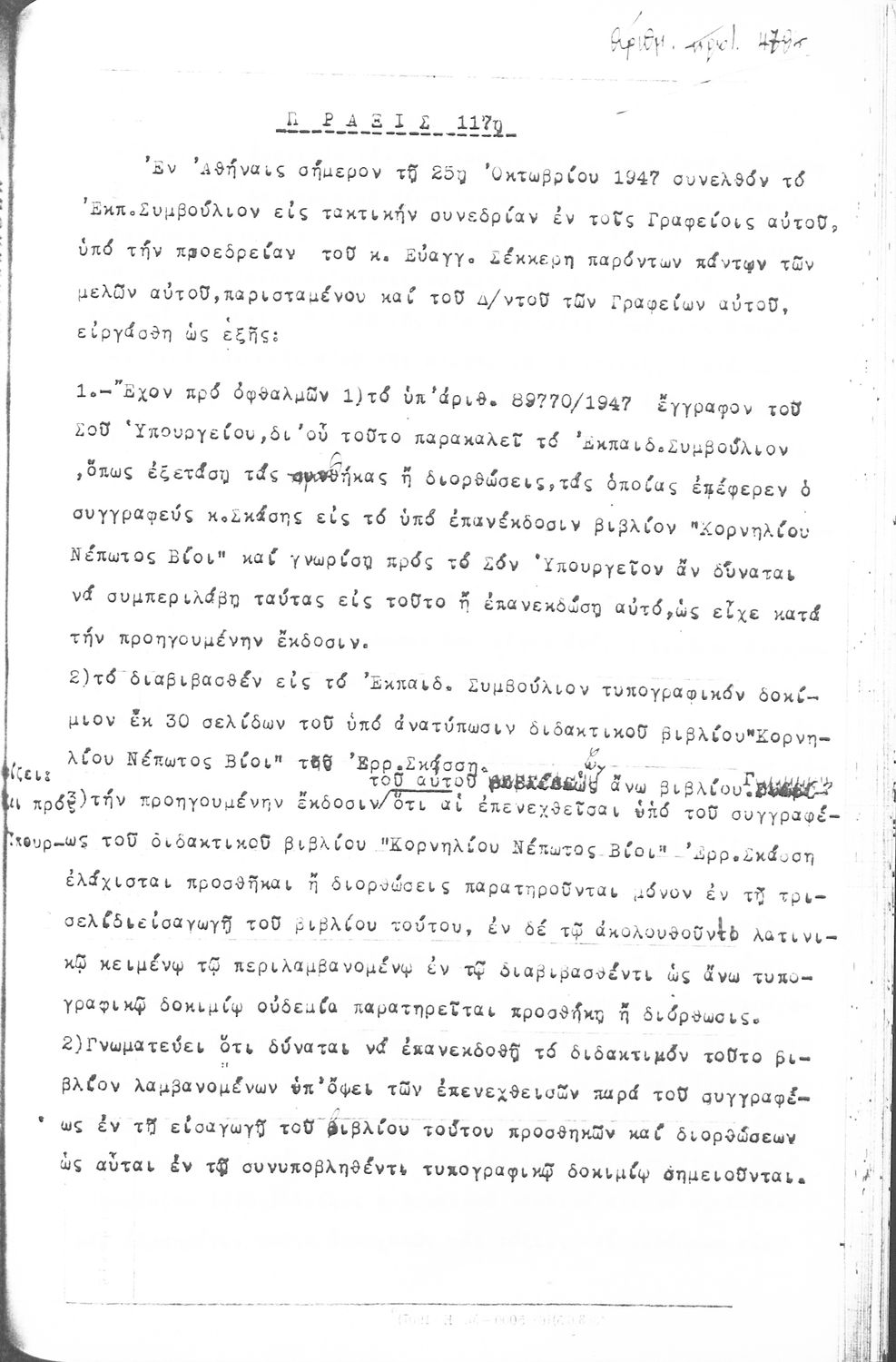 [1947, Τόμος Β, Τεύχος Α Έκδοση]