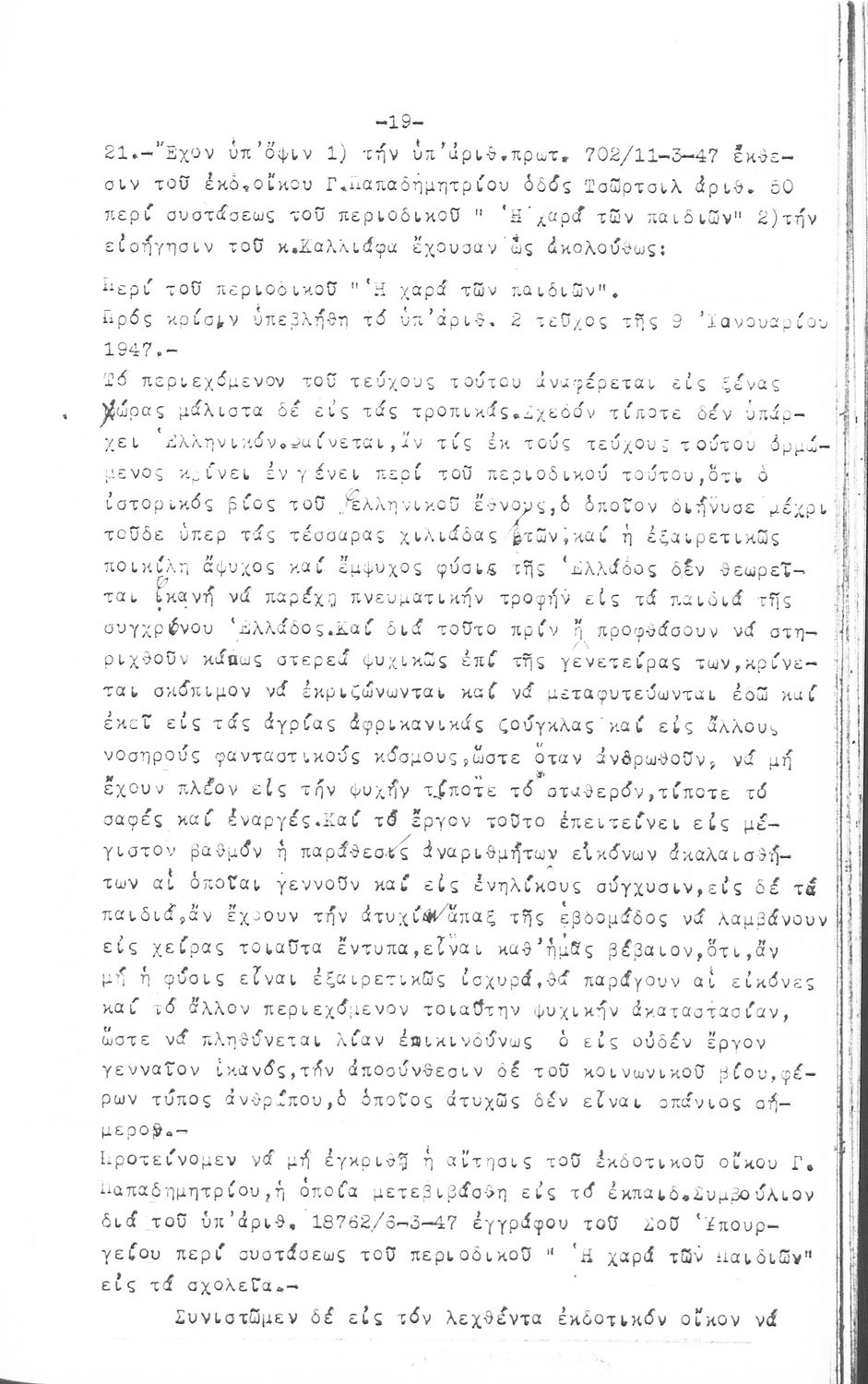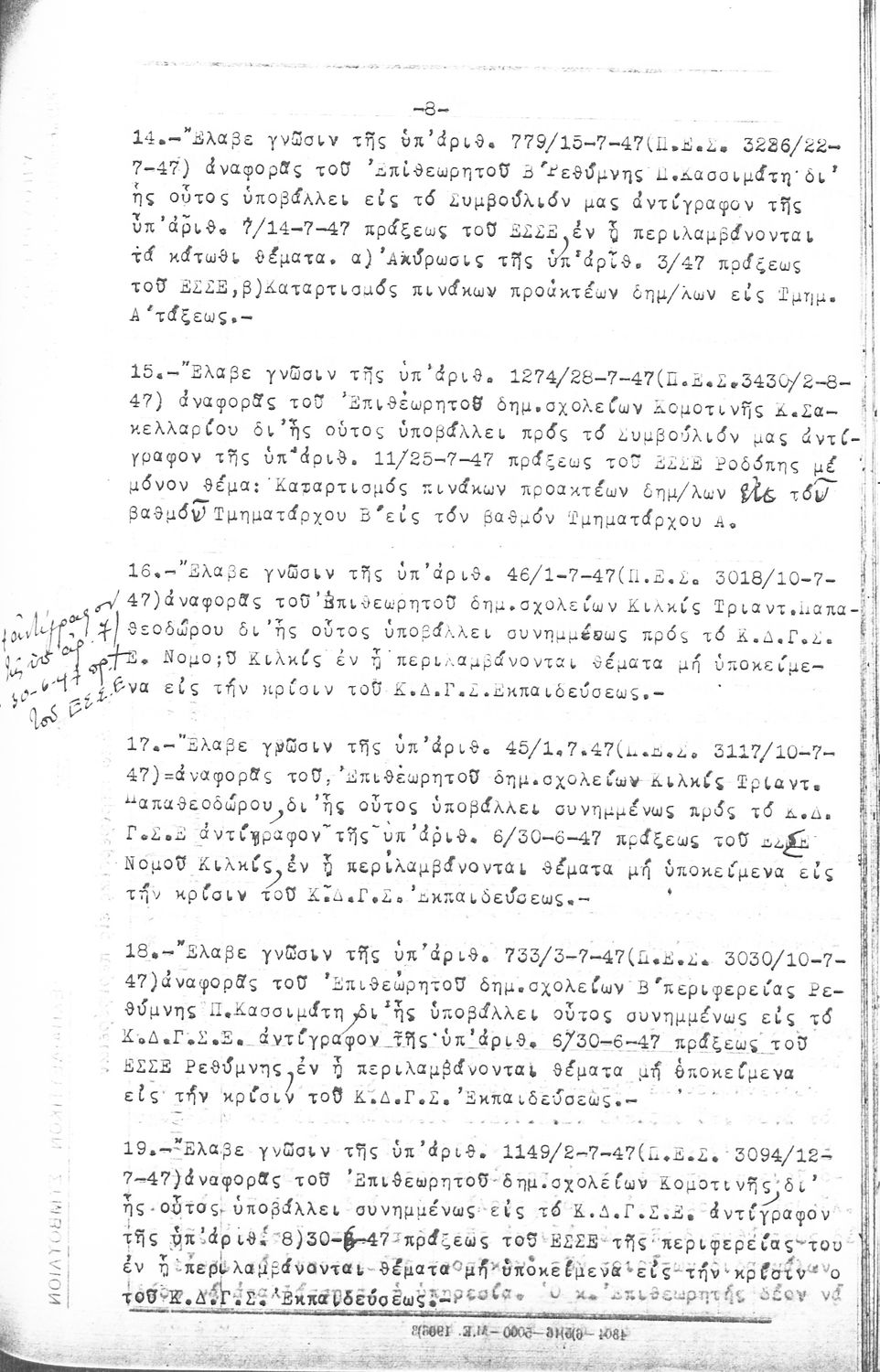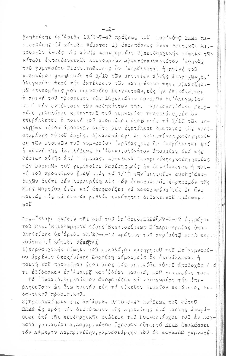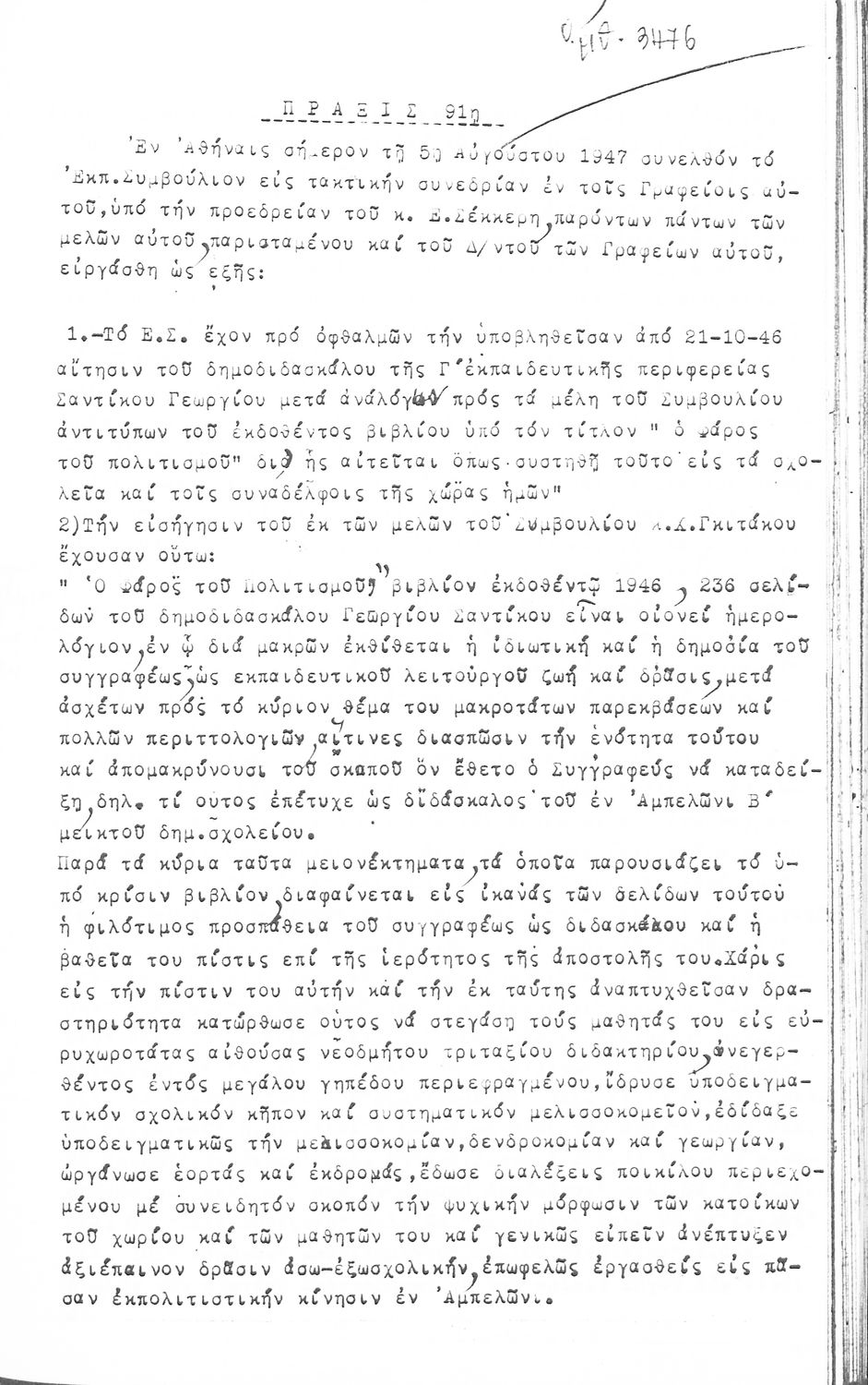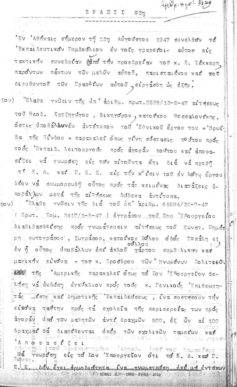 Κωδικός αναγνώρισης: 1947-0041 Τίτλος: ΠΡΑΚΤΙΚΑ ΟΛΟΜΕΛΕΙΑΣ ΕΚΠΑΙΔΕΥΤΙΚΟΥ ΣΥΜΒΟΥΛΙΟΥ Μέγεθος και υπόστρωμα: Πρακτικά αεσ, 379 σελίδες. |