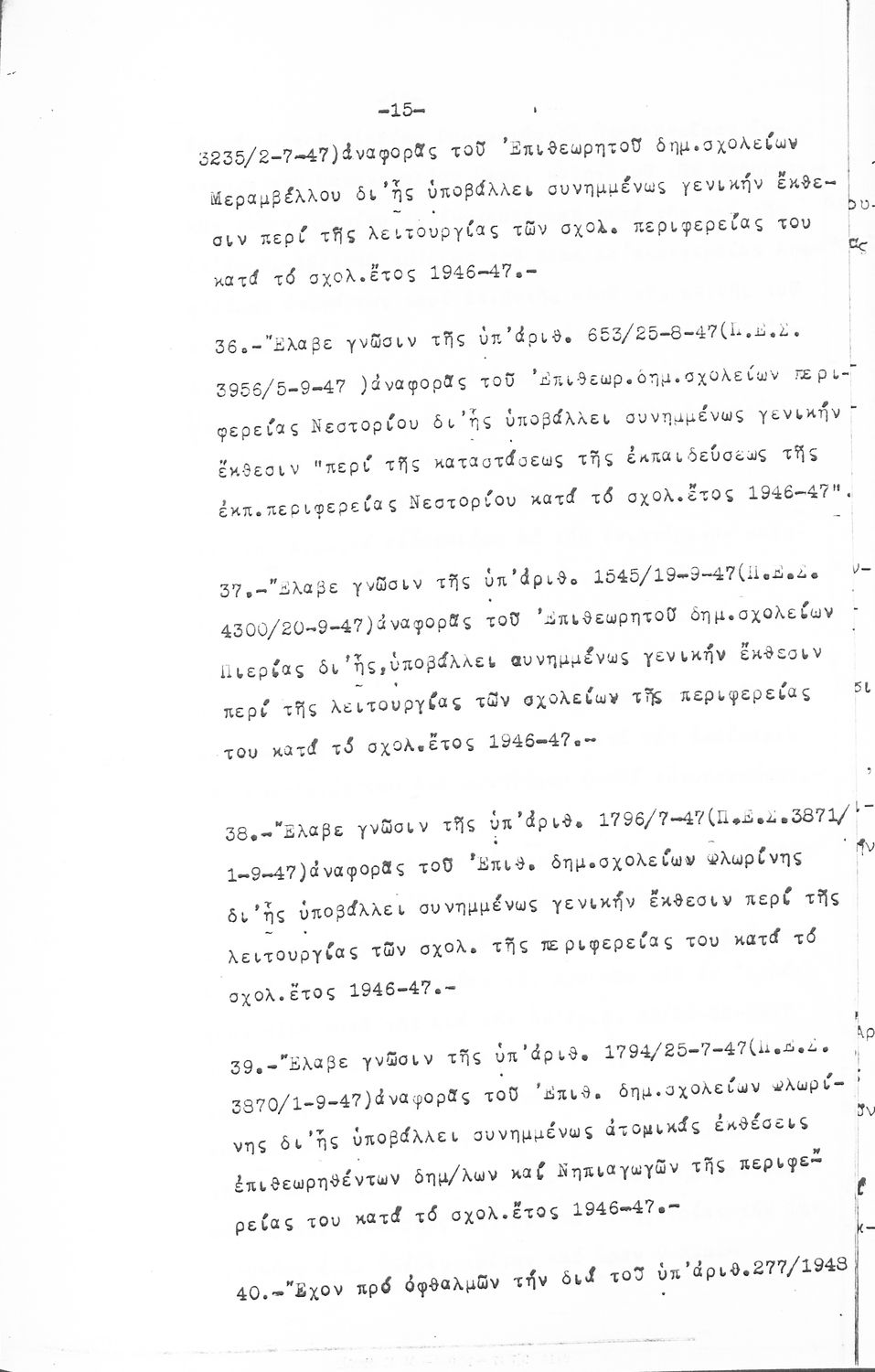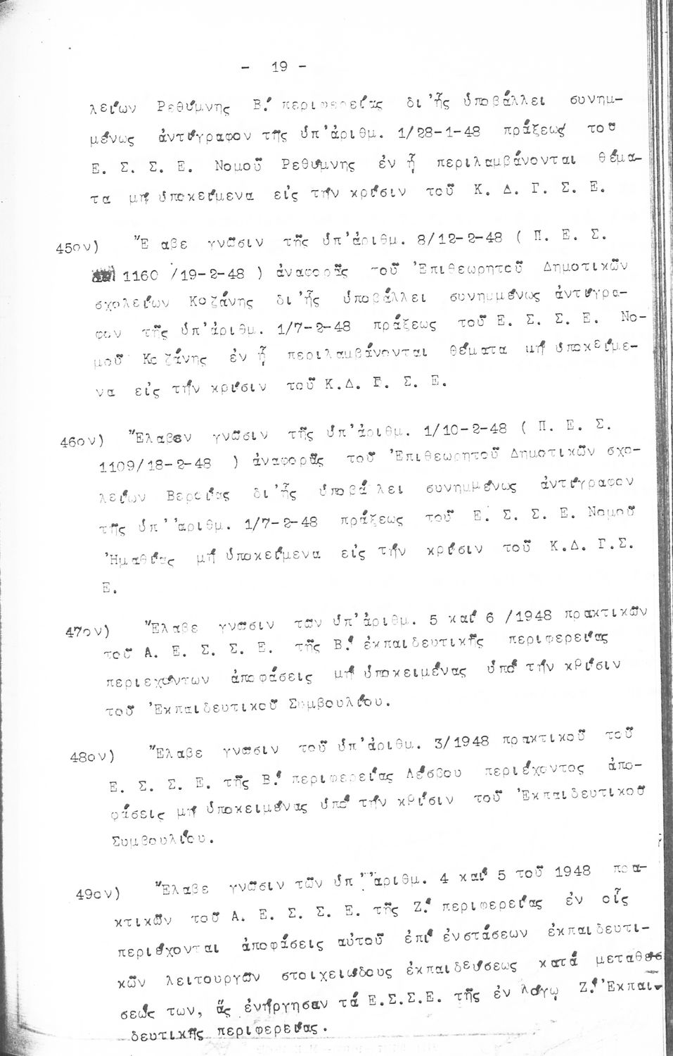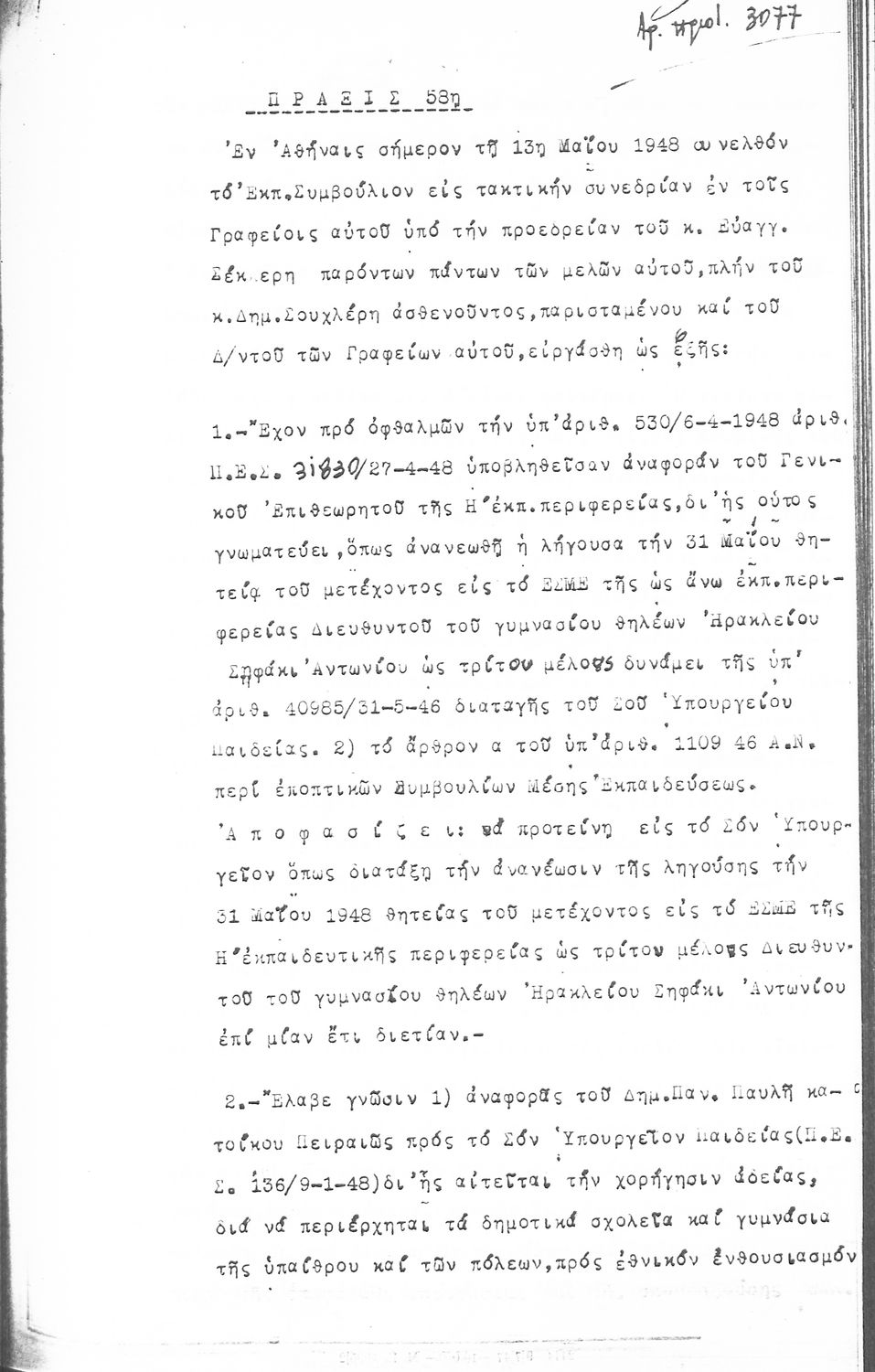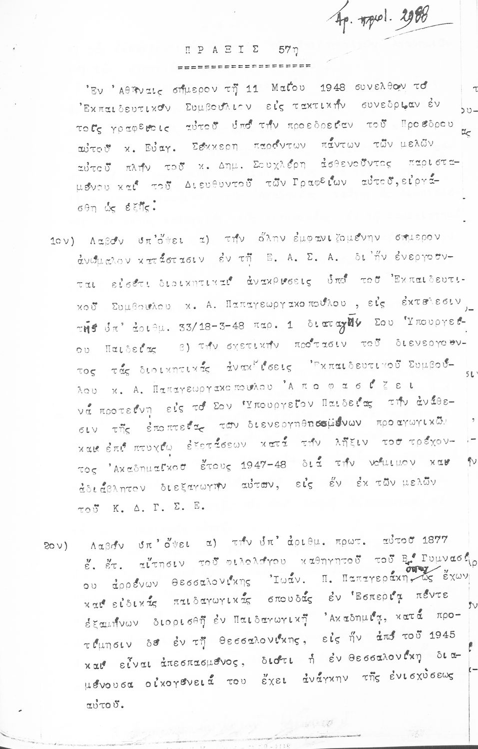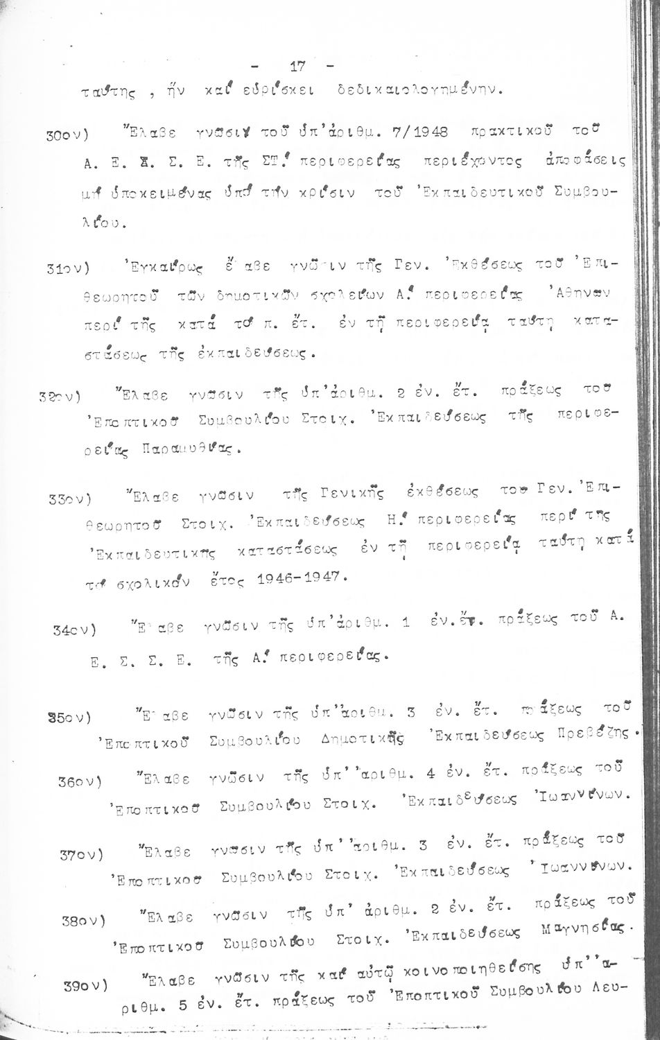 Κωδικός αναγνώρισης: 1948-0045 Τίτλος: ΠΡΑΚΤΙΚΑ ΟΛΟΜΕΛΕΙΑΣ ΕΚΠΑΙΔΕΥΤΙΚΟΥ ΣΥΜΒΟΥΛΙΟΥ Μέγεθος και υπόστρωμα: Πρακτικά αεσ, 278 σελίδες. |