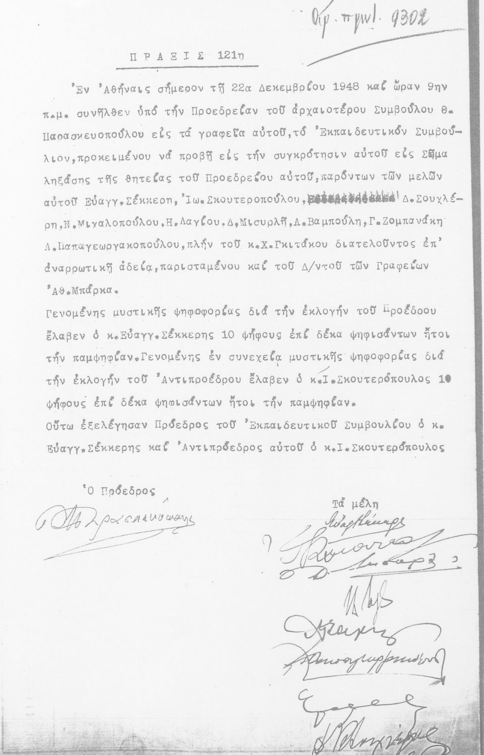 Κωδικός αναγνώρισης: 1948-0048 Τίτλος: ΠΡΑΚΤΙΚΑ ΟΛΟΜΕΛΕΙΑΣ ΕΚΠΑΙΔΕΥΤΙΚΟΥ ΣΥΜΒΟΥΛΙΟΥ Μέγεθος και υπόστρωμα: Πρακτικά αεσ, 325 σελίδες. |