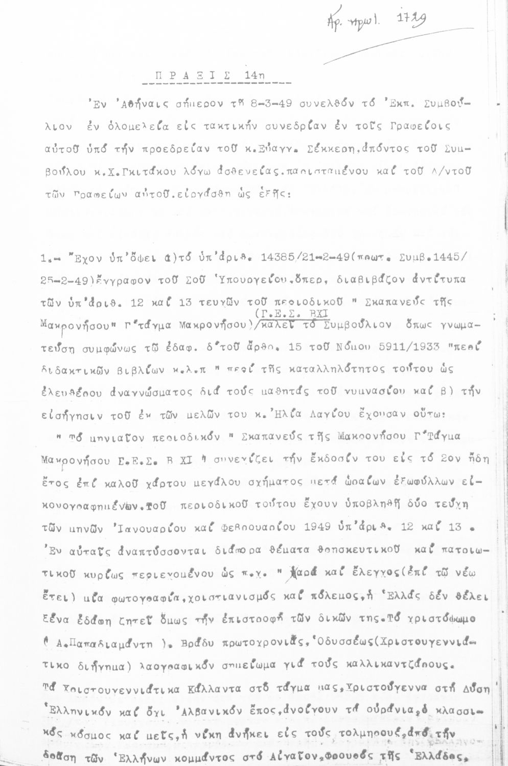 [1949, Τόμος Α, Τεύχος Α Έκδοση]