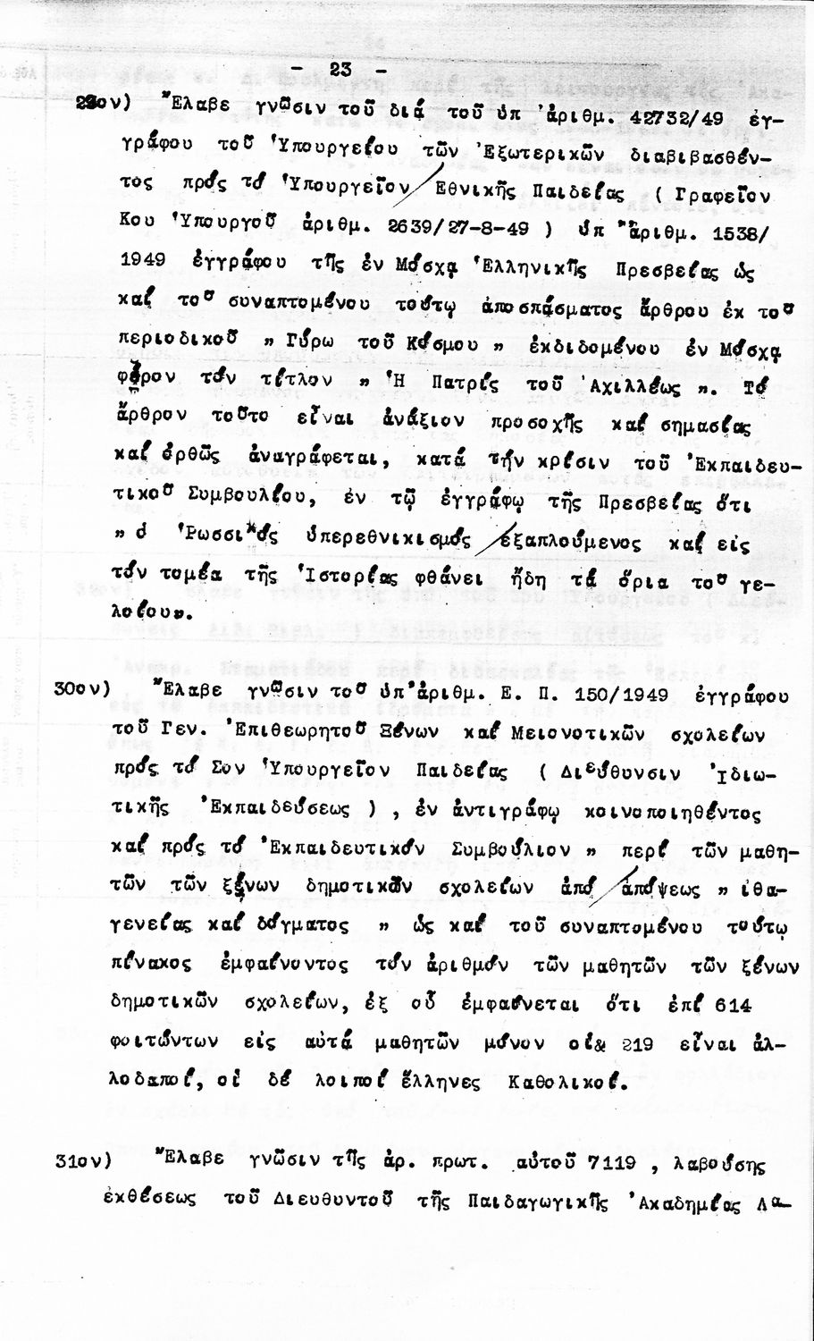 Κωδικός αναγνώρισης: 1949-0052 Τίτλος: ΠΡΑΚΤΙΚΑ ΟΛΟΜΕΛΕΙΑΣ ΕΚΠΑΙΔΕΥΤΙΚΟΥ ΣΥΜΒΟΥΛΙΟΥ Μέγεθος και υπόστρωμα: Πρακτικά αεσ, 292 σελίδες. |