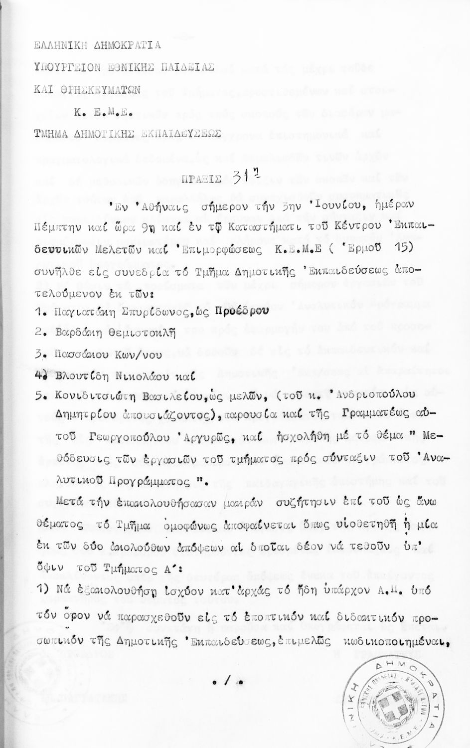 Τίτλος: Τμήμα Δημοτικής Εκπαίδευσης
