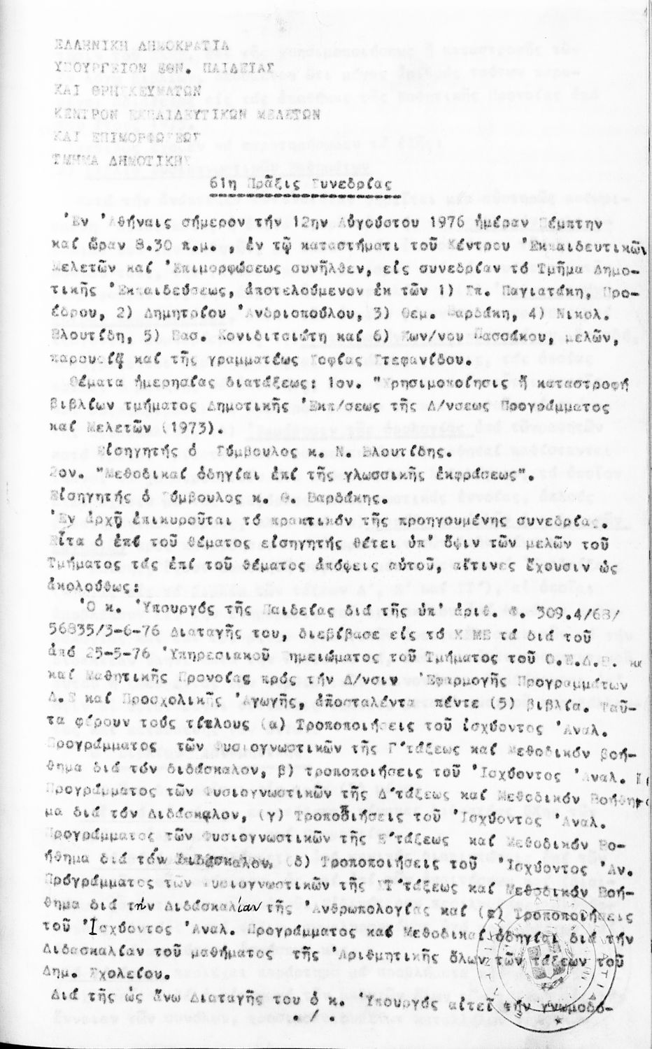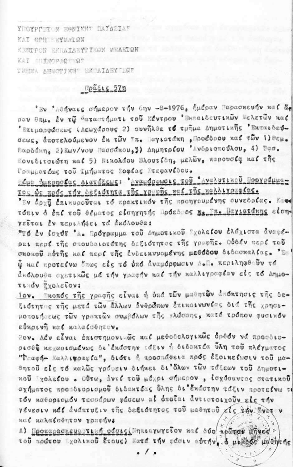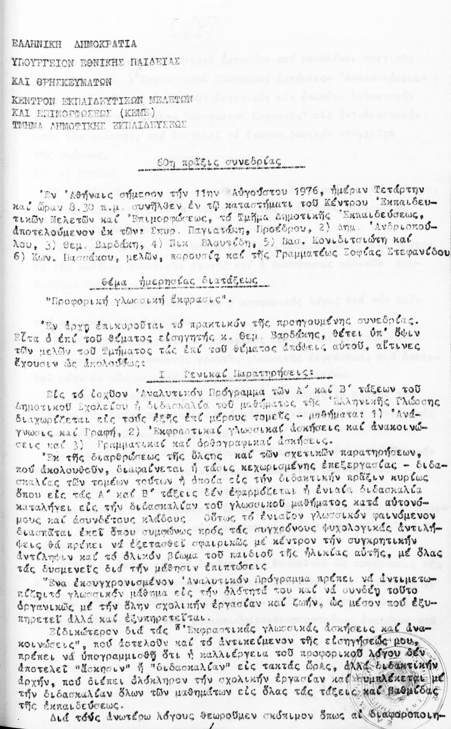 Κωδικός αναγνώρισης: 1976-0122 Τίτλος: Τμήμα Δημοτικής Εκπαίδευσης Μέγεθος και υπόστρωμα: Πρακτικά κεμε, 809 σελίδες. |