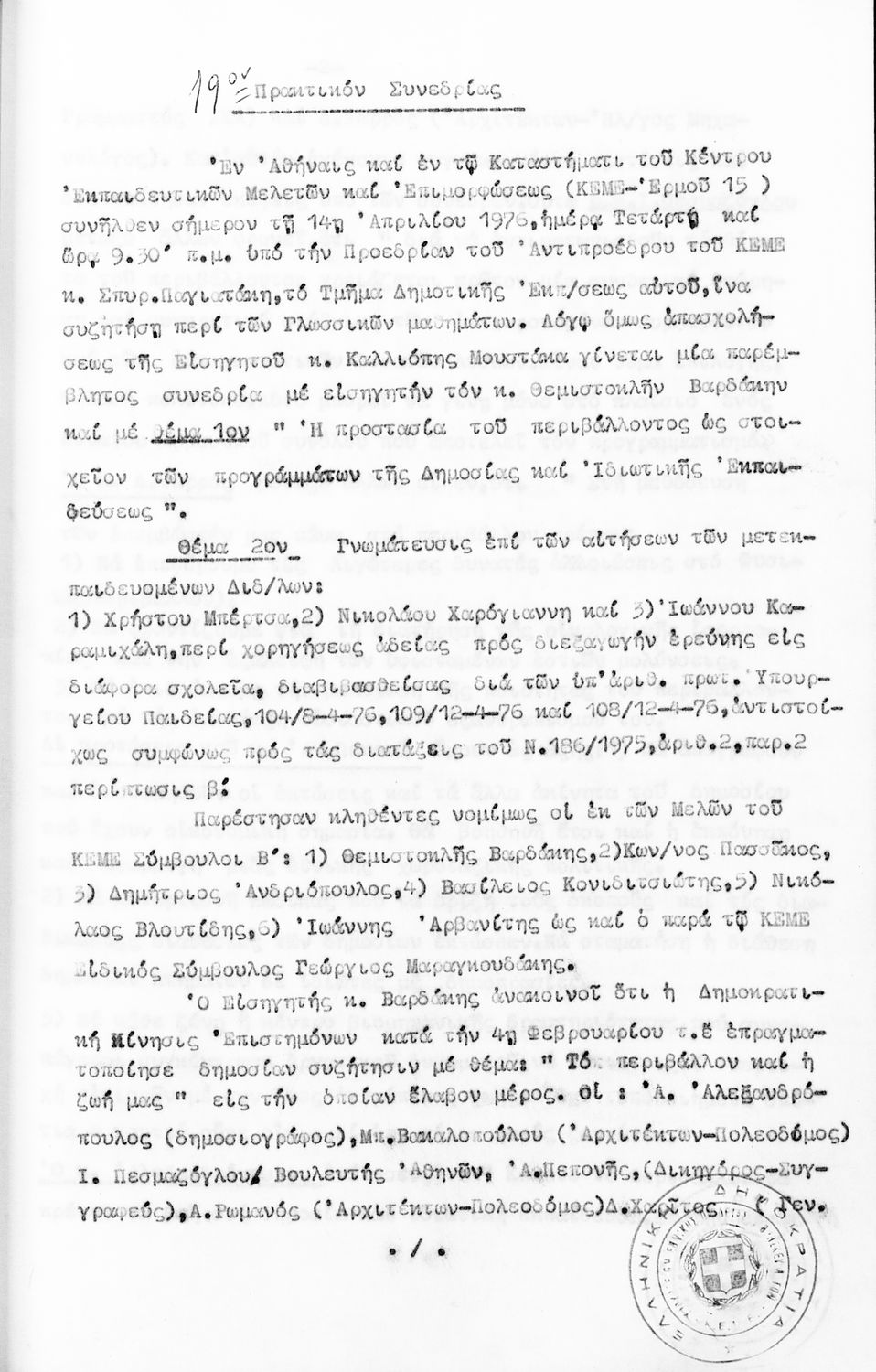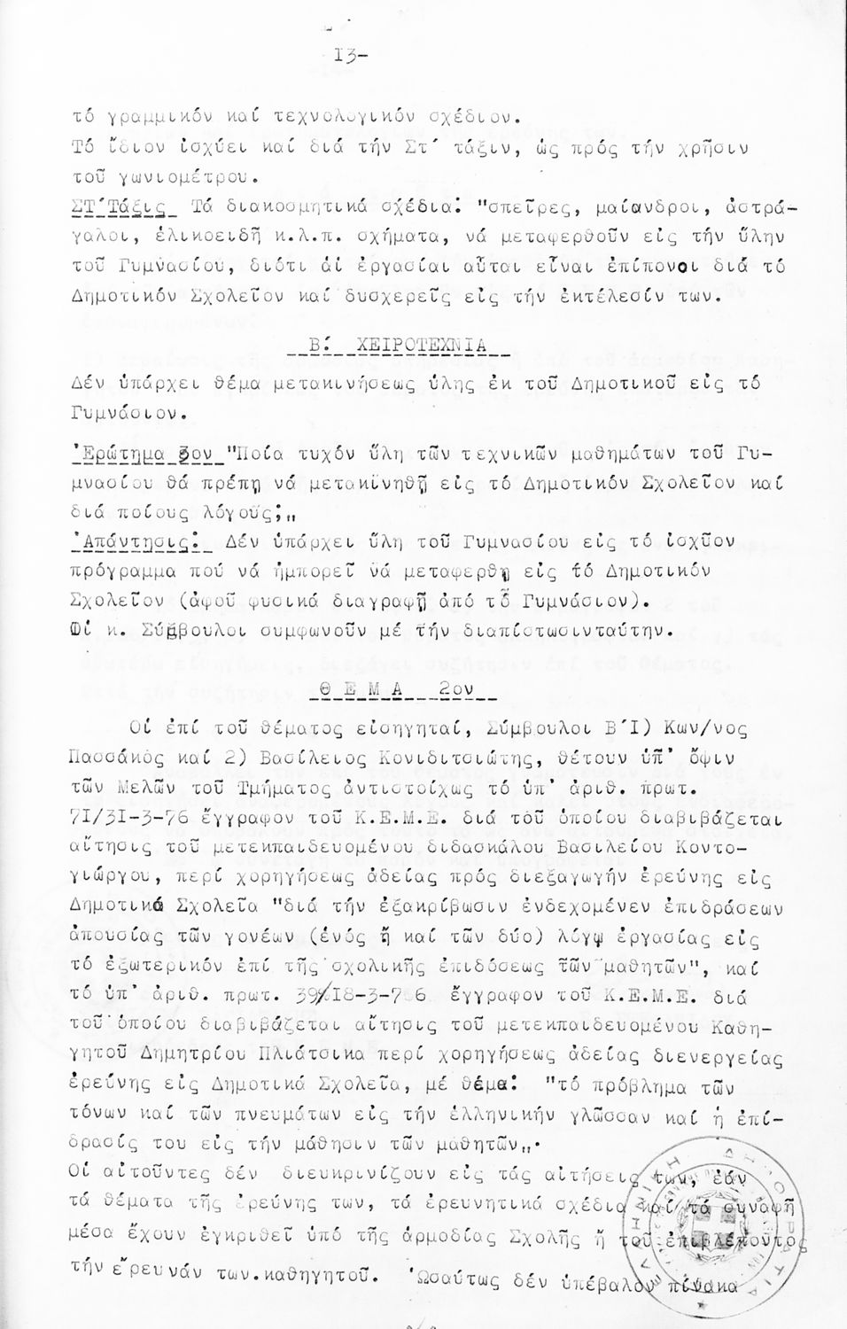 Κωδικός αναγνώρισης: 1976-0122 Τίτλος: Τμήμα Δημοτικής Εκπαίδευσης Μέγεθος και υπόστρωμα: Πρακτικά κεμε, 809 σελίδες. |