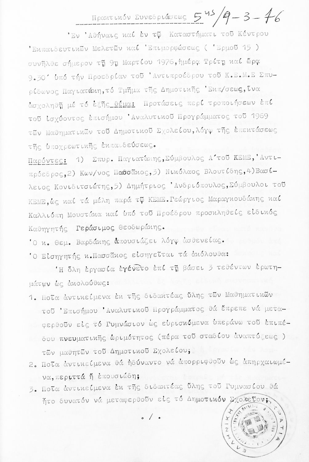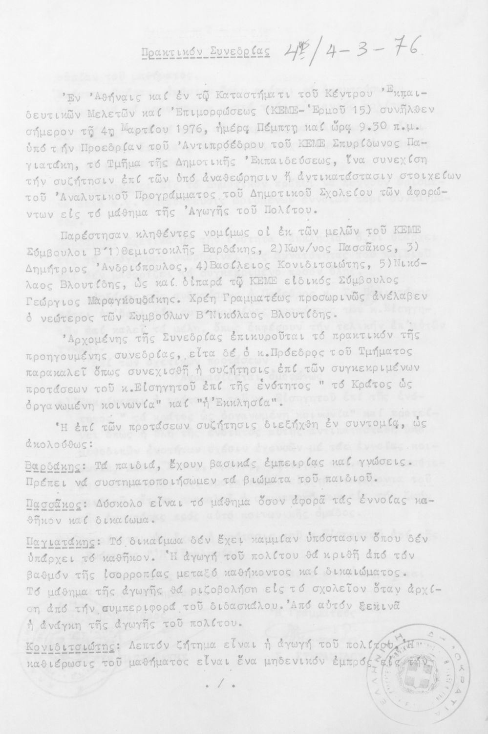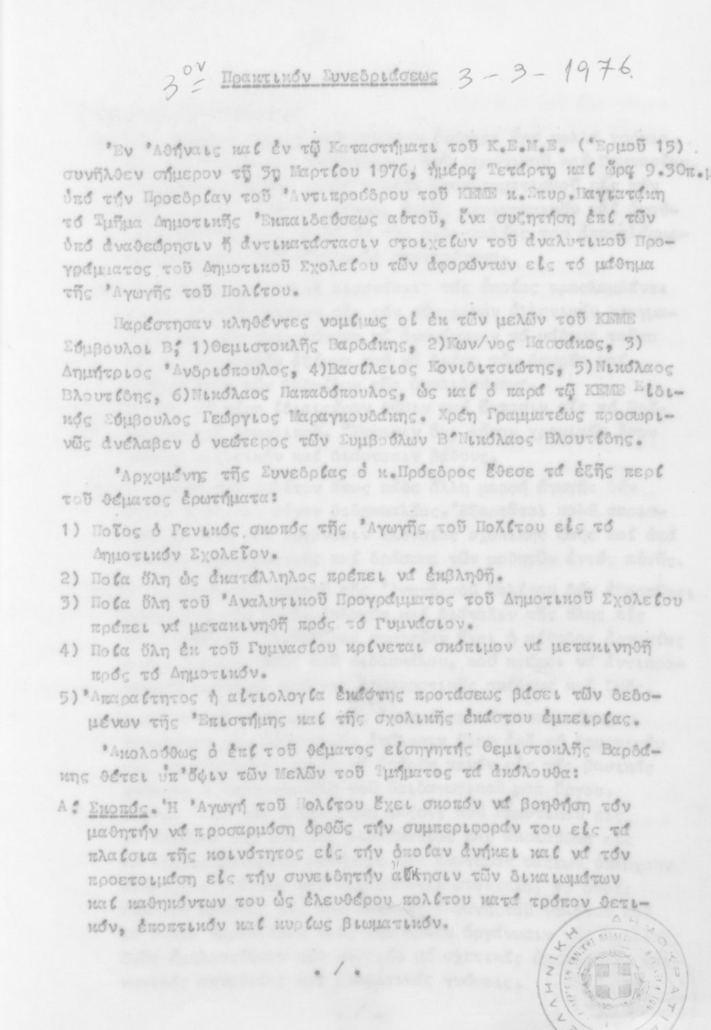 Κωδικός αναγνώρισης: 1976-0122 Τίτλος: Τμήμα Δημοτικής Εκπαίδευσης Μέγεθος και υπόστρωμα: Πρακτικά κεμε, 809 σελίδες. |
