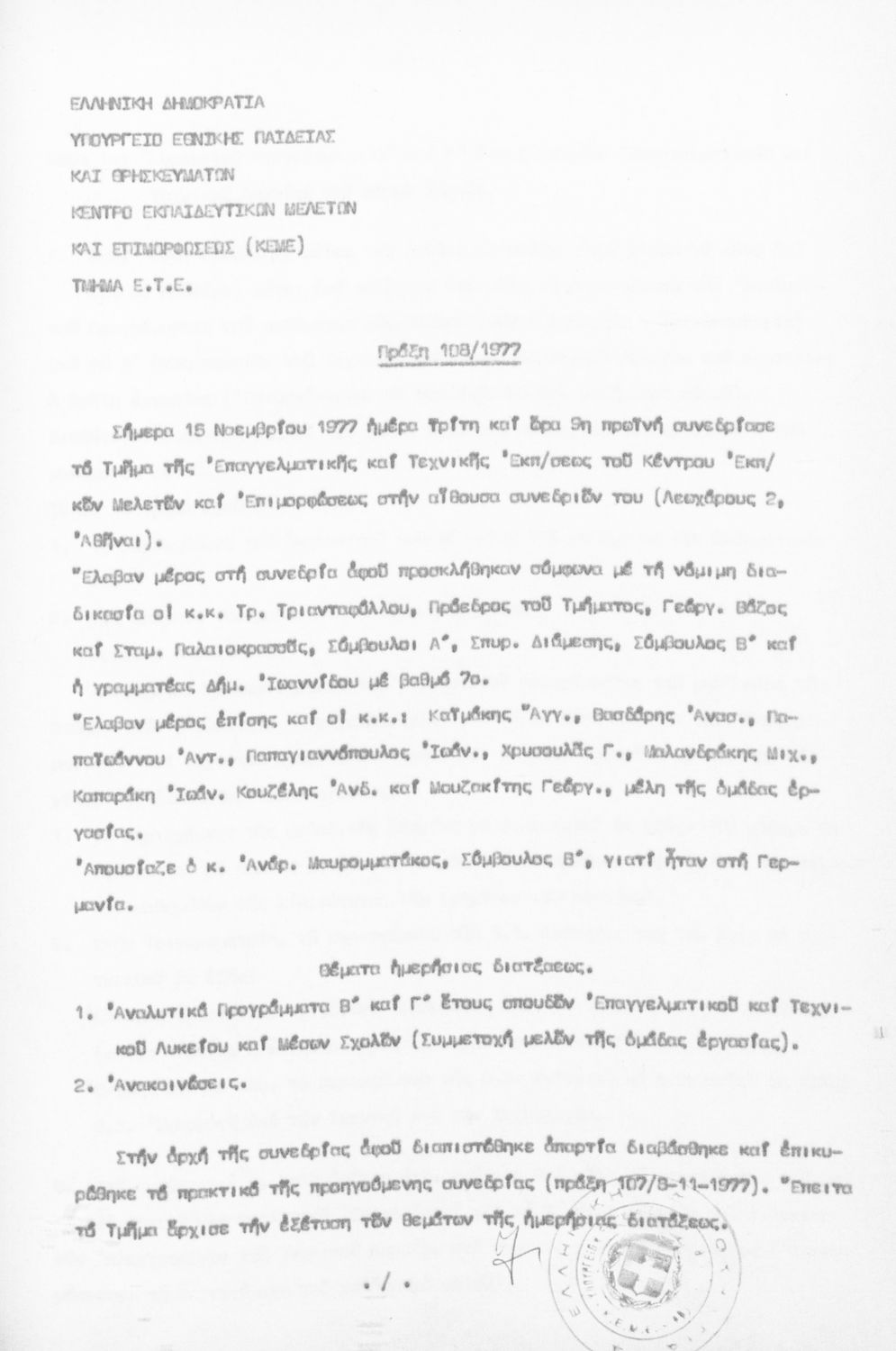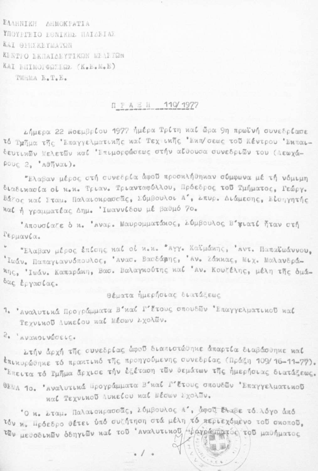 Τίτλος: Τμήμα Τεχνικής και Επαγγελματικής Εκπαίδευσης