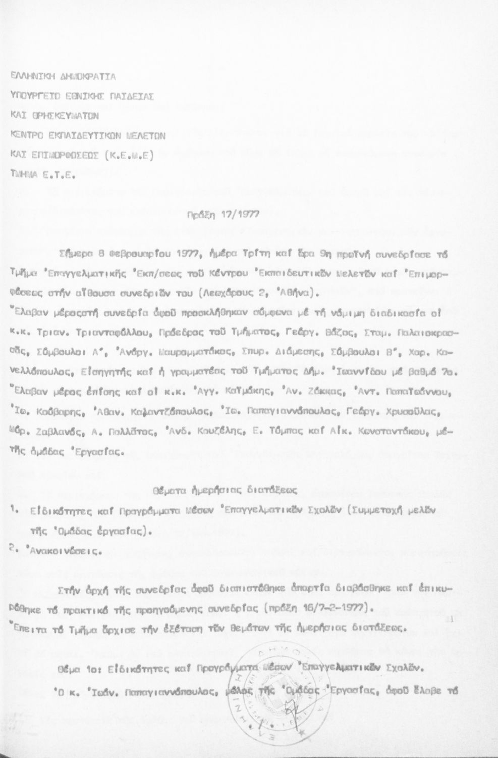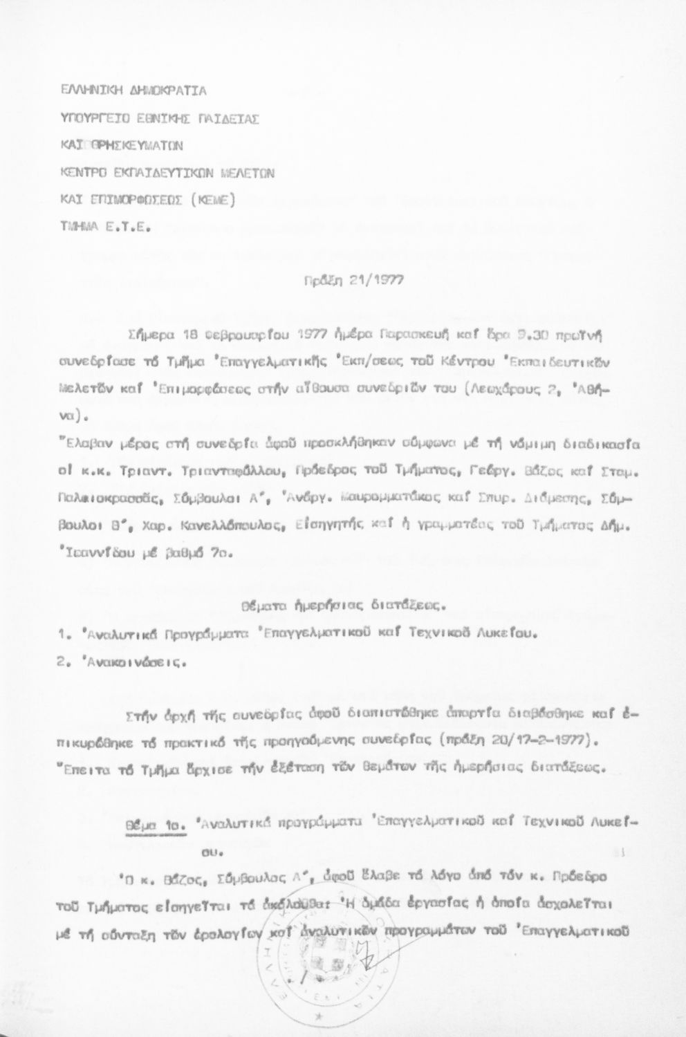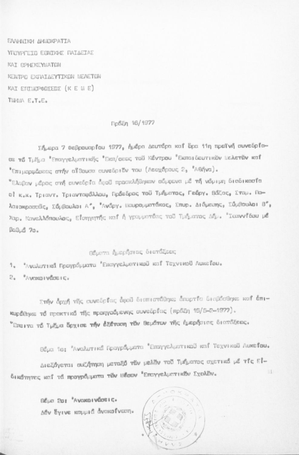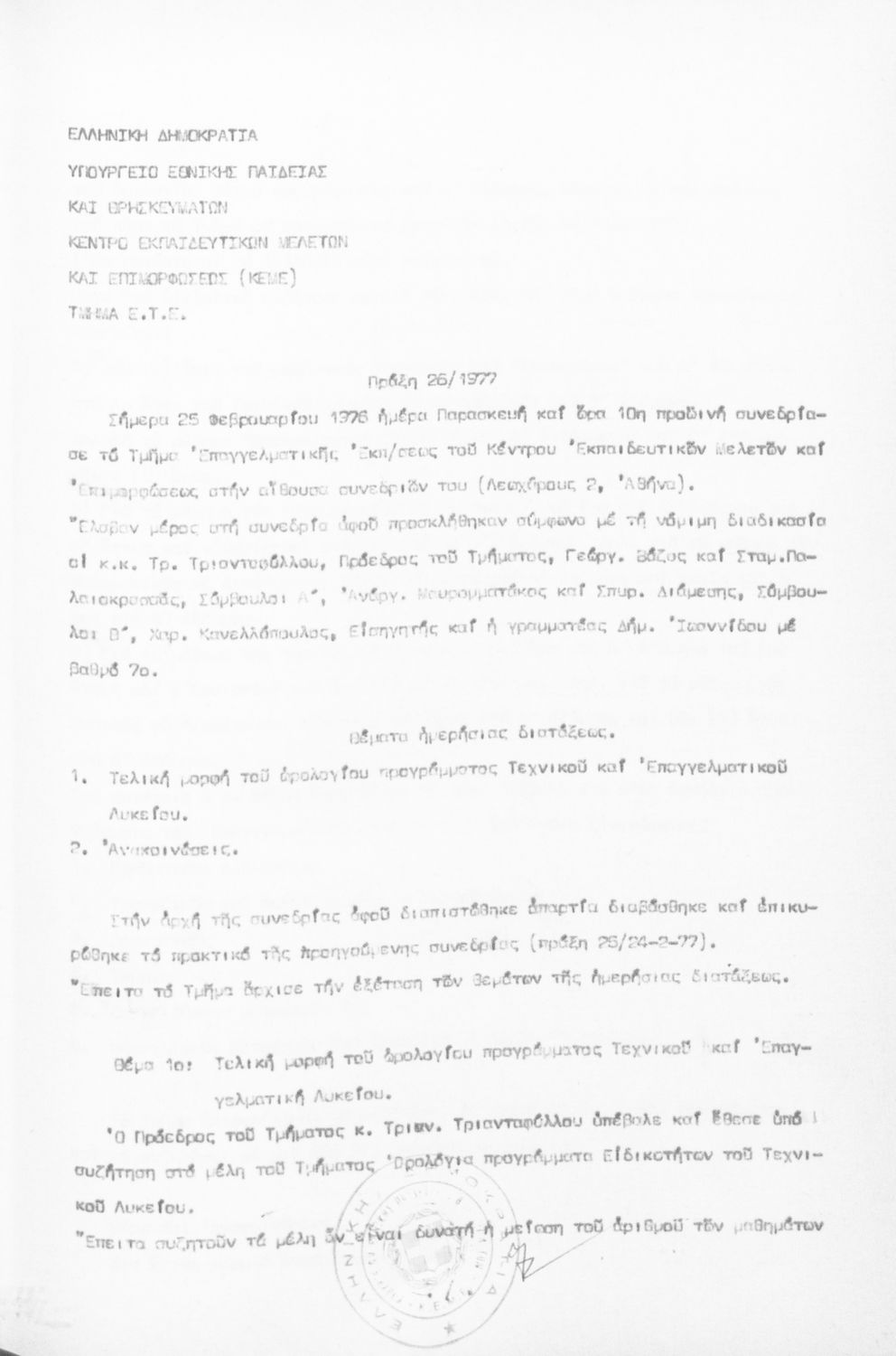 Τίτλος: Τμήμα Τεχνικής και Επαγγελματικής Εκπαίδευσης