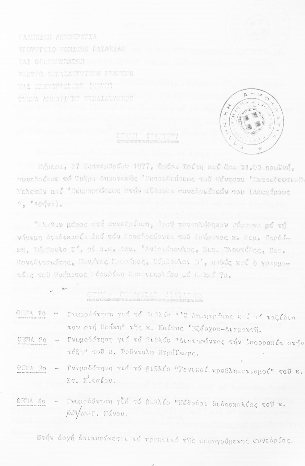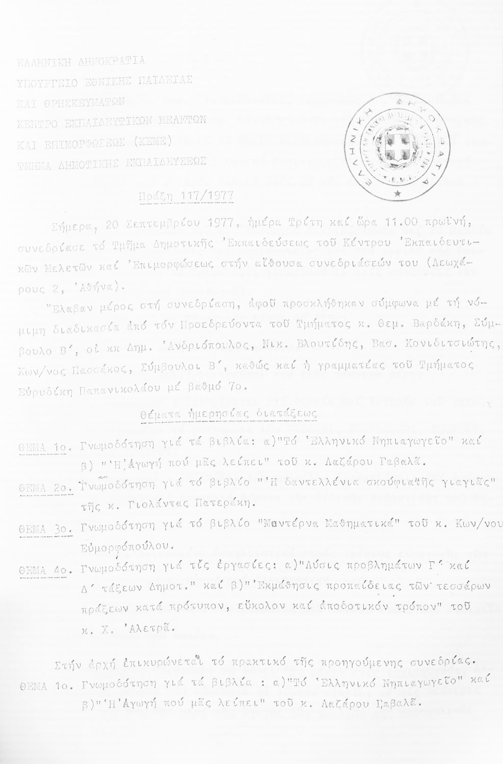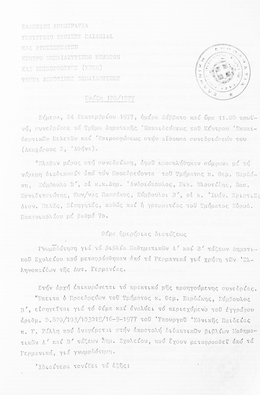 Κωδικός αναγνώρισης: 1977-0198 Τίτλος: Τμήμα Δημοτικής Εκπαίδευσης Μέγεθος και υπόστρωμα: Πρακτικά κεμε, 814 σελίδες. |
