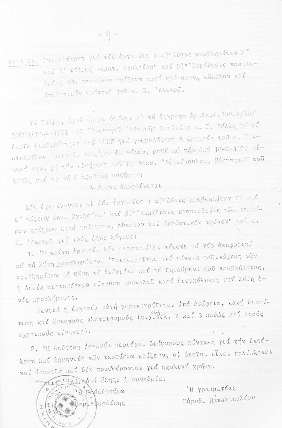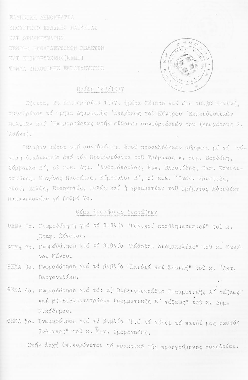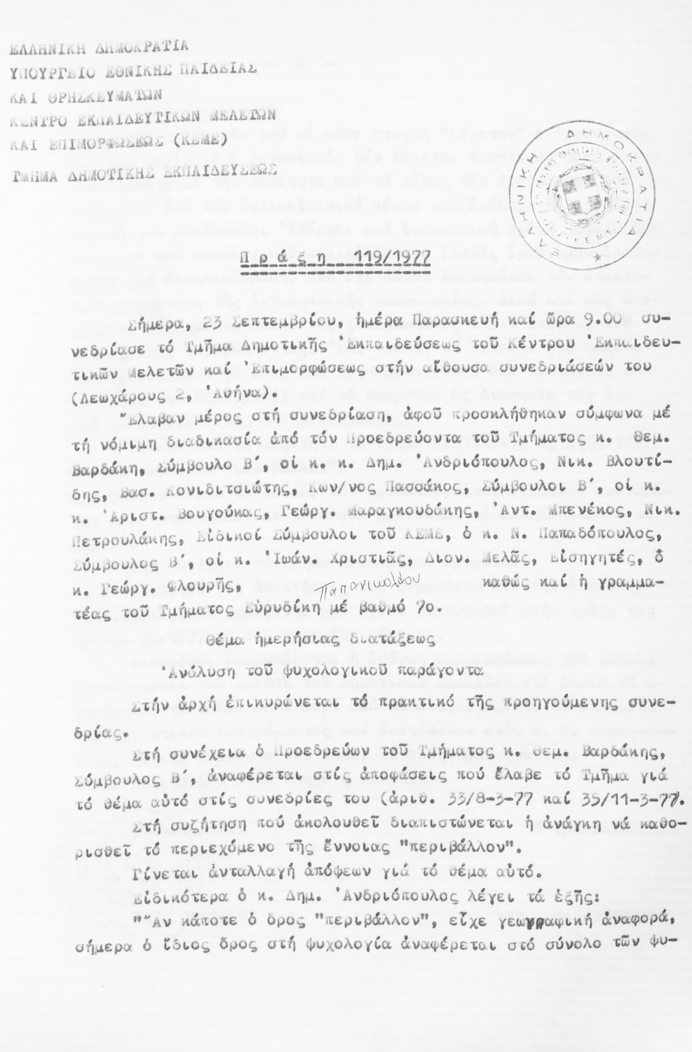 Κωδικός αναγνώρισης: 1977-0198 Τίτλος: Τμήμα Δημοτικής Εκπαίδευσης Μέγεθος και υπόστρωμα: Πρακτικά κεμε, 814 σελίδες. |