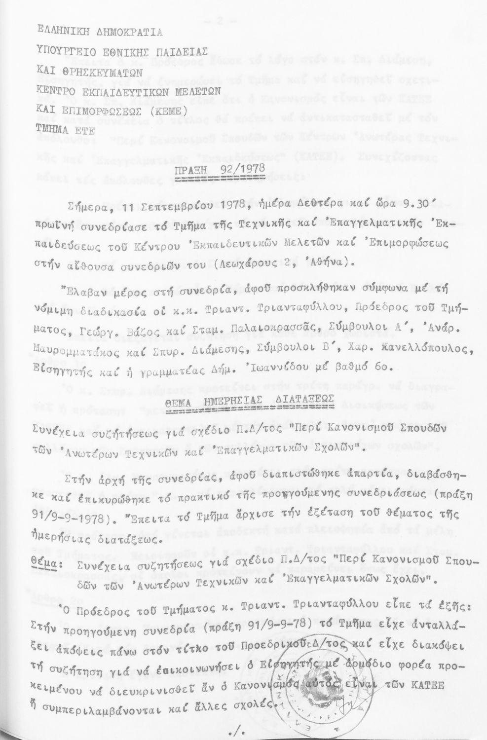 Τίτλος: Τμήμα Τεχνικής και Επαγγελματικής Εκπαίδευσης
