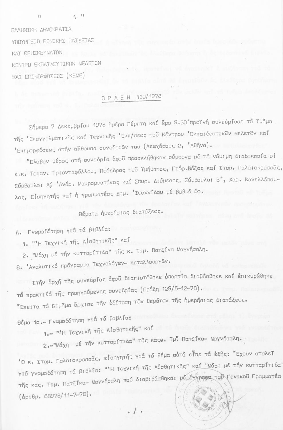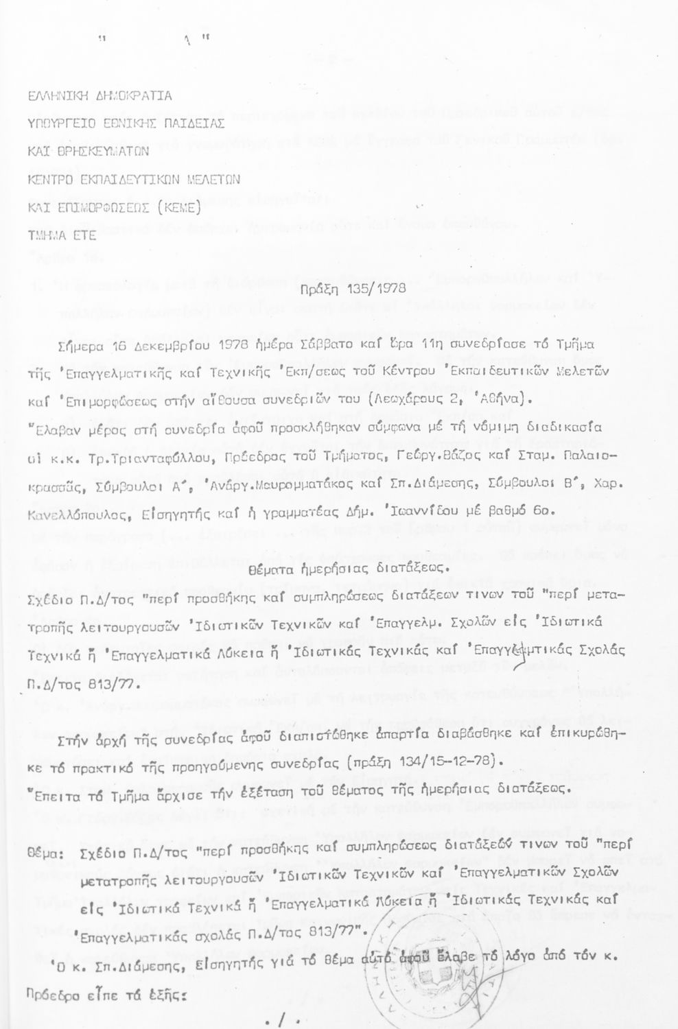 Τίτλος: Τμήμα Τεχνικής και Επαγγελματικής Εκπαίδευσης