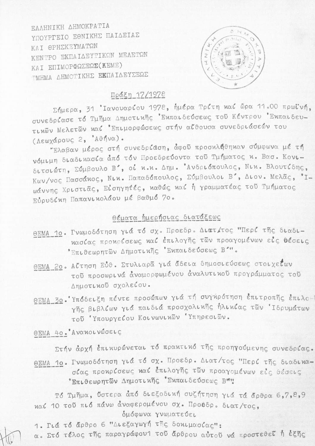 Τίτλος: Τμήμα Δημοτικής Εκπαίδευσης