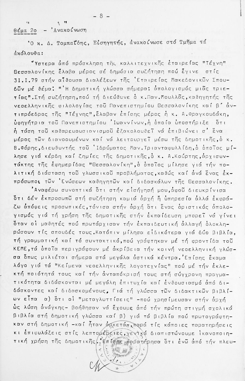 Κωδικός αναγνώρισης: 1979-0105 Τίτλος: Τμήμα Μέσης Μέγεθος και υπόστρωμα: Πρακτικά κεμε, 503 σελίδες. |