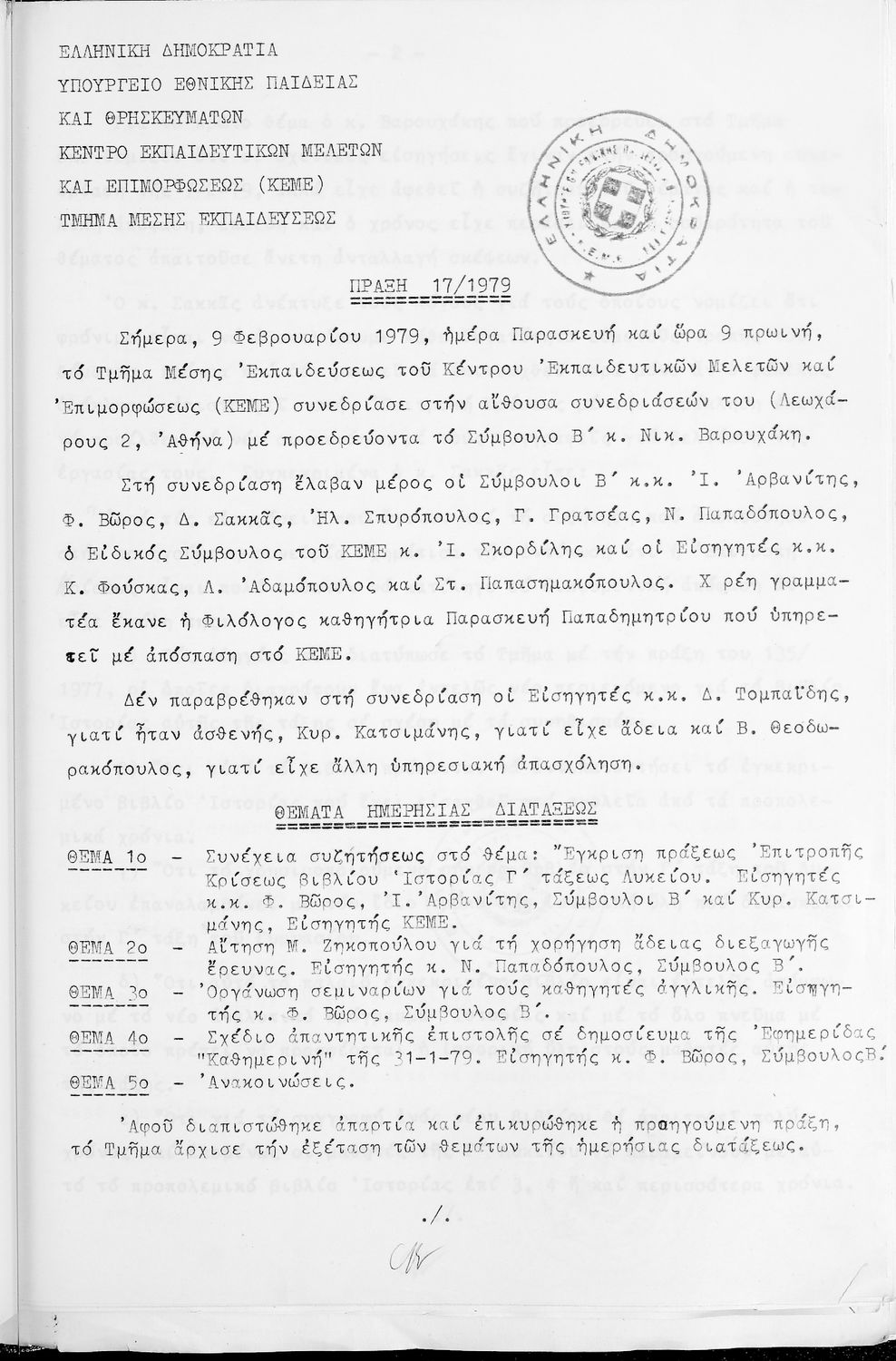 Κωδικός αναγνώρισης: 1979-0105 Τίτλος: Τμήμα Μέσης Μέγεθος και υπόστρωμα: Πρακτικά κεμε, 503 σελίδες. |
