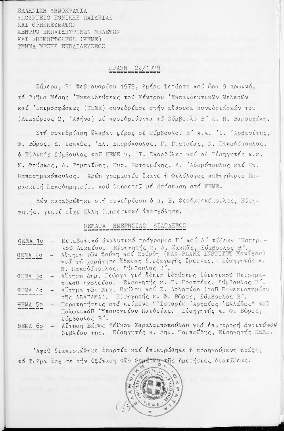 Κωδικός αναγνώρισης: 1979-0105 Τίτλος: Τμήμα Μέσης Μέγεθος και υπόστρωμα: Πρακτικά κεμε, 503 σελίδες. |