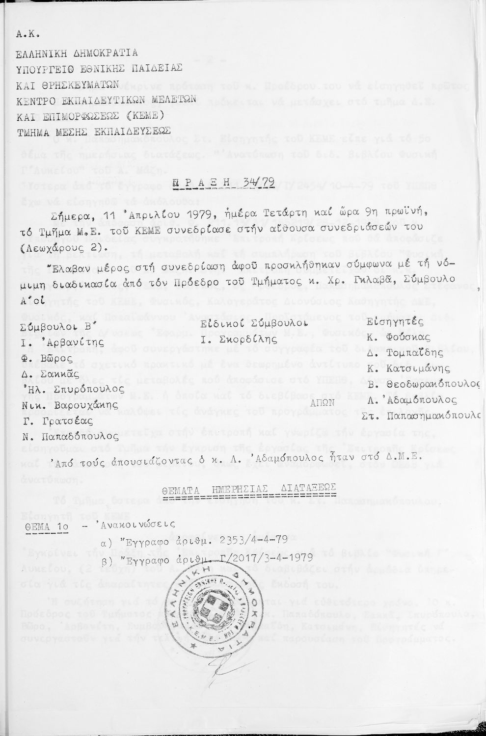 Κωδικός αναγνώρισης: 1979-0105 Τίτλος: Τμήμα Μέσης Μέγεθος και υπόστρωμα: Πρακτικά κεμε, 503 σελίδες. |