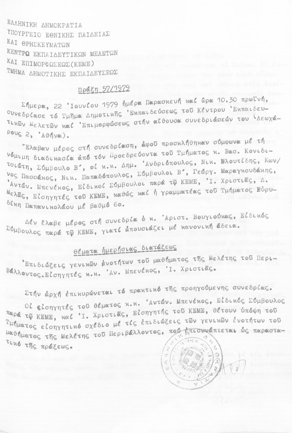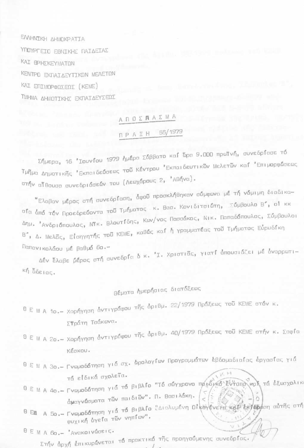 Κωδικός αναγνώρισης: 1979-0125 Τίτλος: Τμήμα Δημοτικής Εκπαίδευσης Μέγεθος και υπόστρωμα: Πρακτικά κεμε, 649 σελίδες. |