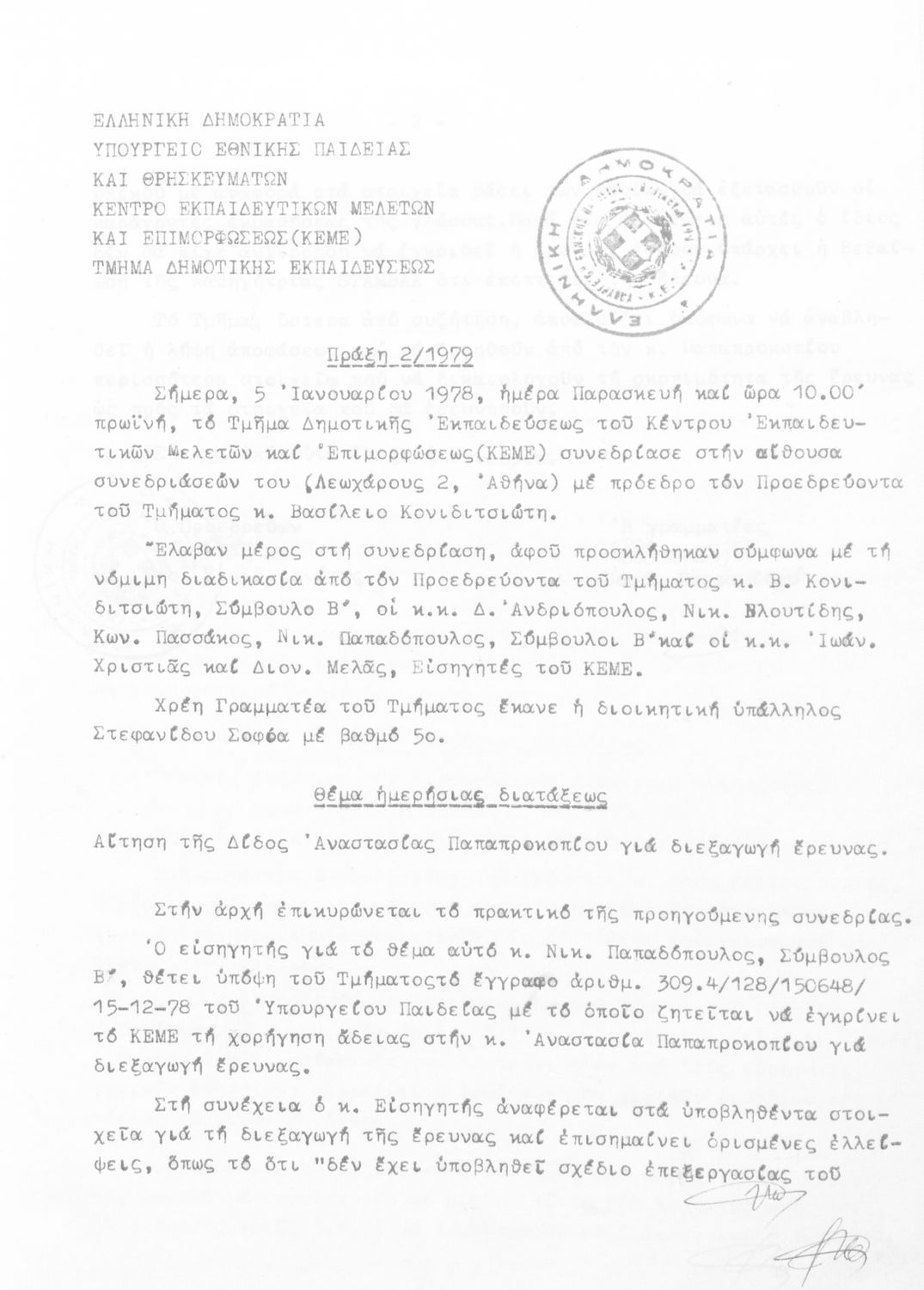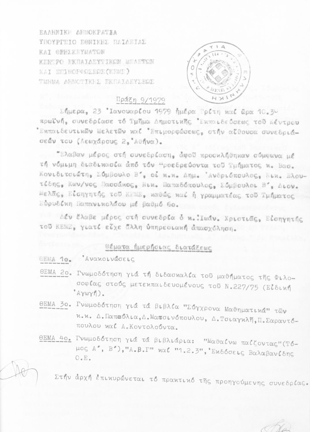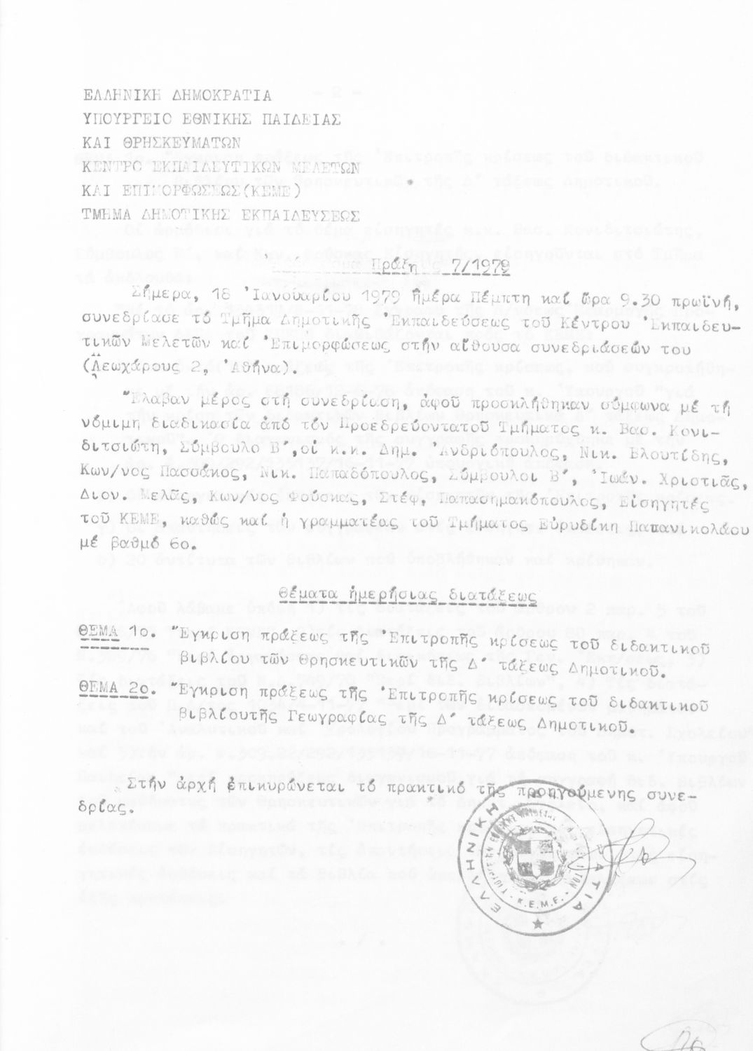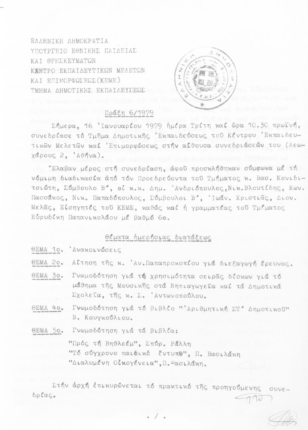 Κωδικός αναγνώρισης: 1979-0125 Τίτλος: Τμήμα Δημοτικής Εκπαίδευσης Μέγεθος και υπόστρωμα: Πρακτικά κεμε, 649 σελίδες. |