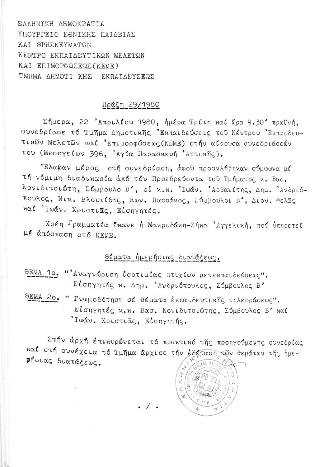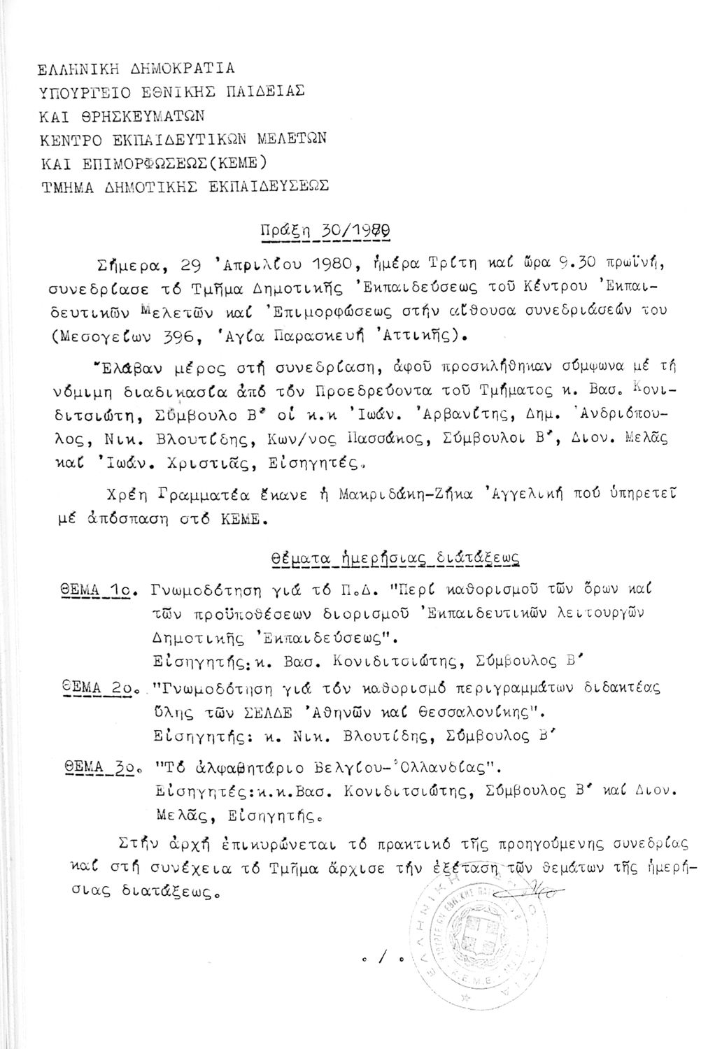 Κωδικός αναγνώρισης: 1980-0126 Τίτλος: Τμήμα Δημοτικής Εκπαίδευσης Μέγεθος και υπόστρωμα: Πρακτικά κεμε, 372 σελίδες. |