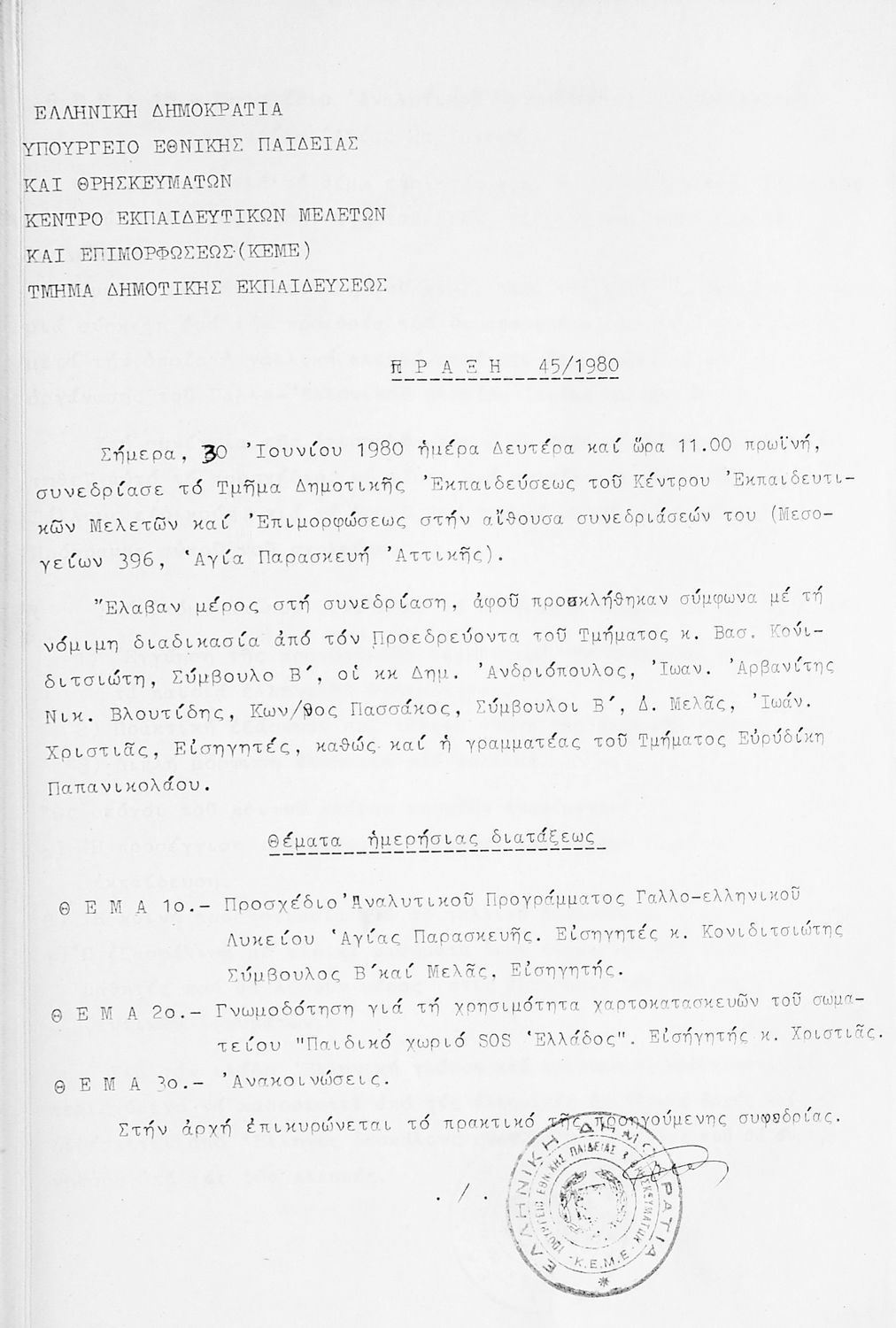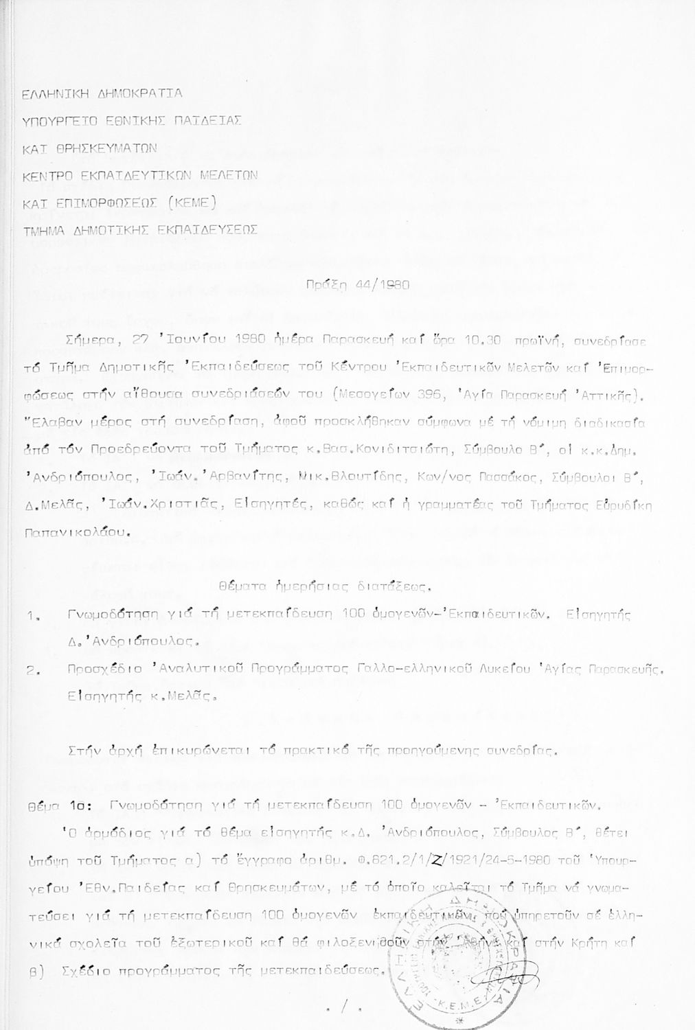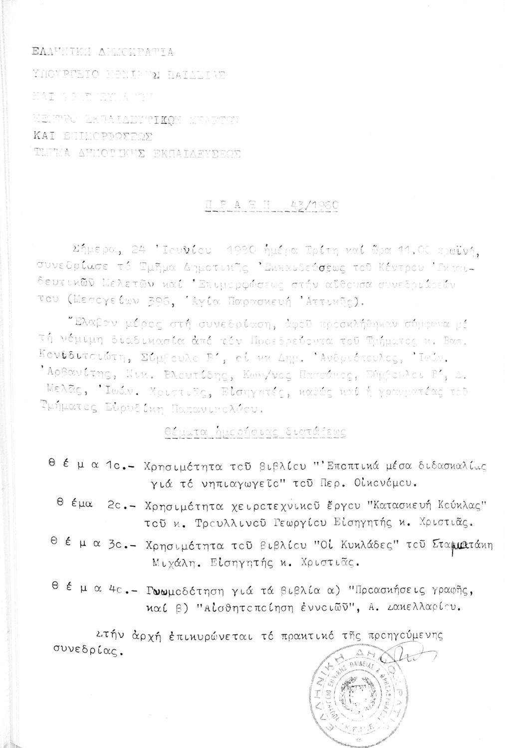 Κωδικός αναγνώρισης: 1980-0126 Τίτλος: Τμήμα Δημοτικής Εκπαίδευσης Μέγεθος και υπόστρωμα: Πρακτικά κεμε, 372 σελίδες. |