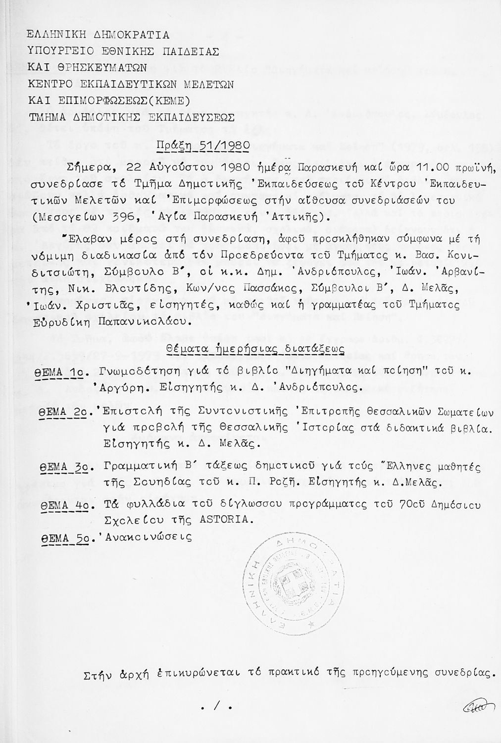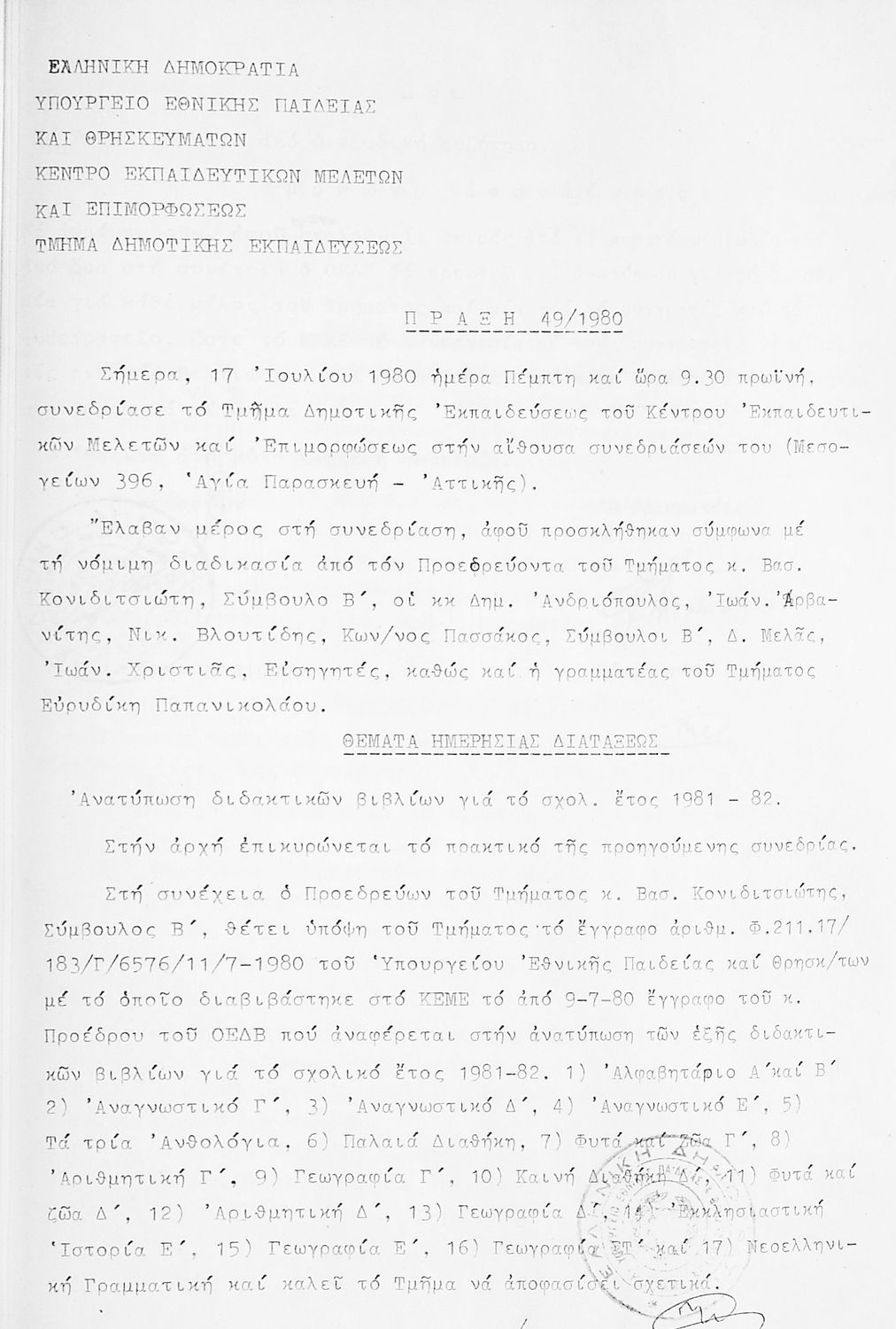 Κωδικός αναγνώρισης: 1980-0126 Τίτλος: Τμήμα Δημοτικής Εκπαίδευσης Μέγεθος και υπόστρωμα: Πρακτικά κεμε, 372 σελίδες. |