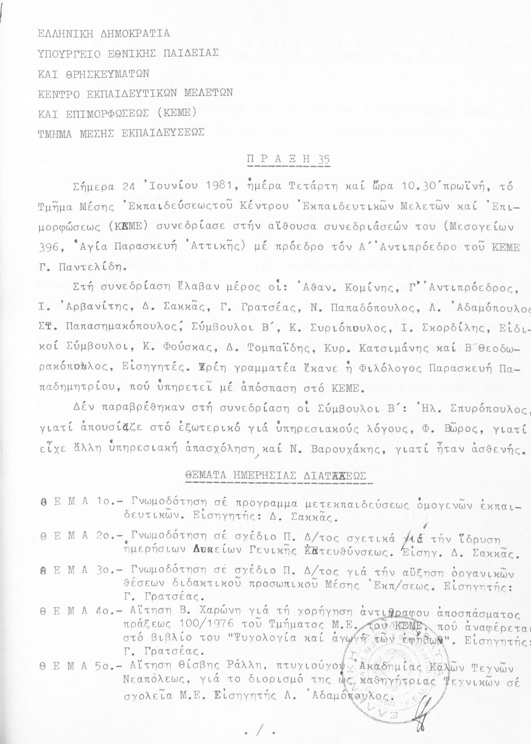 Κωδικός αναγνώρισης: 1981-0109 Τίτλος: Τμήμα Μέσης Μέγεθος και υπόστρωμα: Πρακτικά κεμε, 413 σελίδες. |