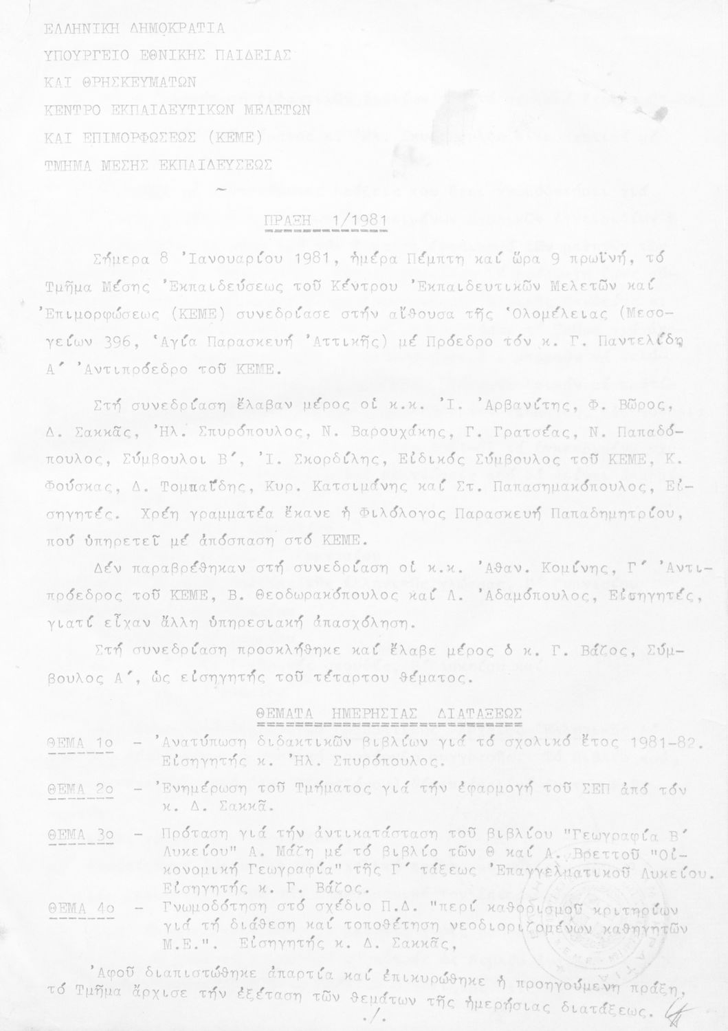 Κωδικός αναγνώρισης: 1981-0109 Τίτλος: Τμήμα Μέσης Μέγεθος και υπόστρωμα: Πρακτικά κεμε, 413 σελίδες. |