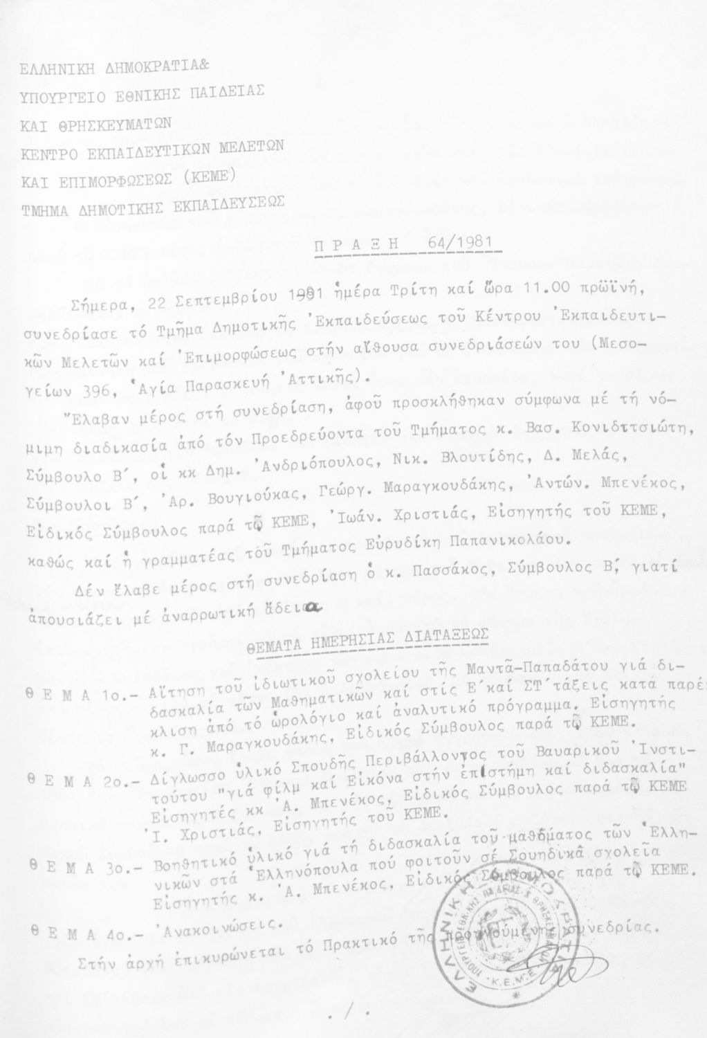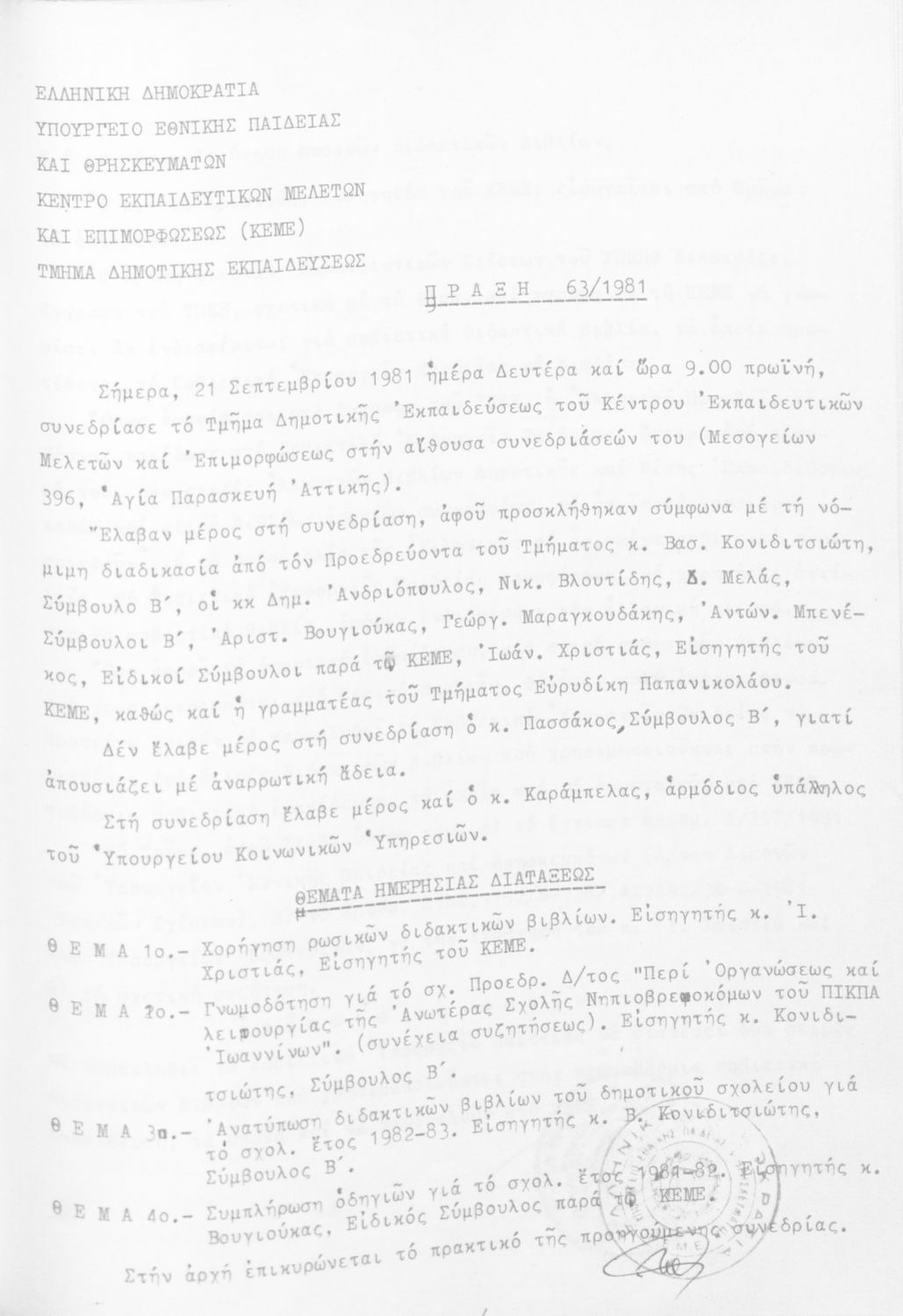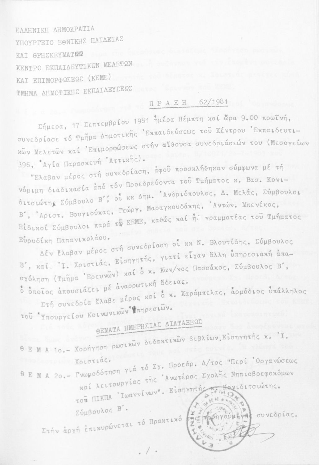 Κωδικός αναγνώρισης: 1981-0127 Τίτλος: Τμήμα Δημοτικής Εκπαίδευσης Μέγεθος και υπόστρωμα: Πρακτικά κεμε, 511 σελίδες. |