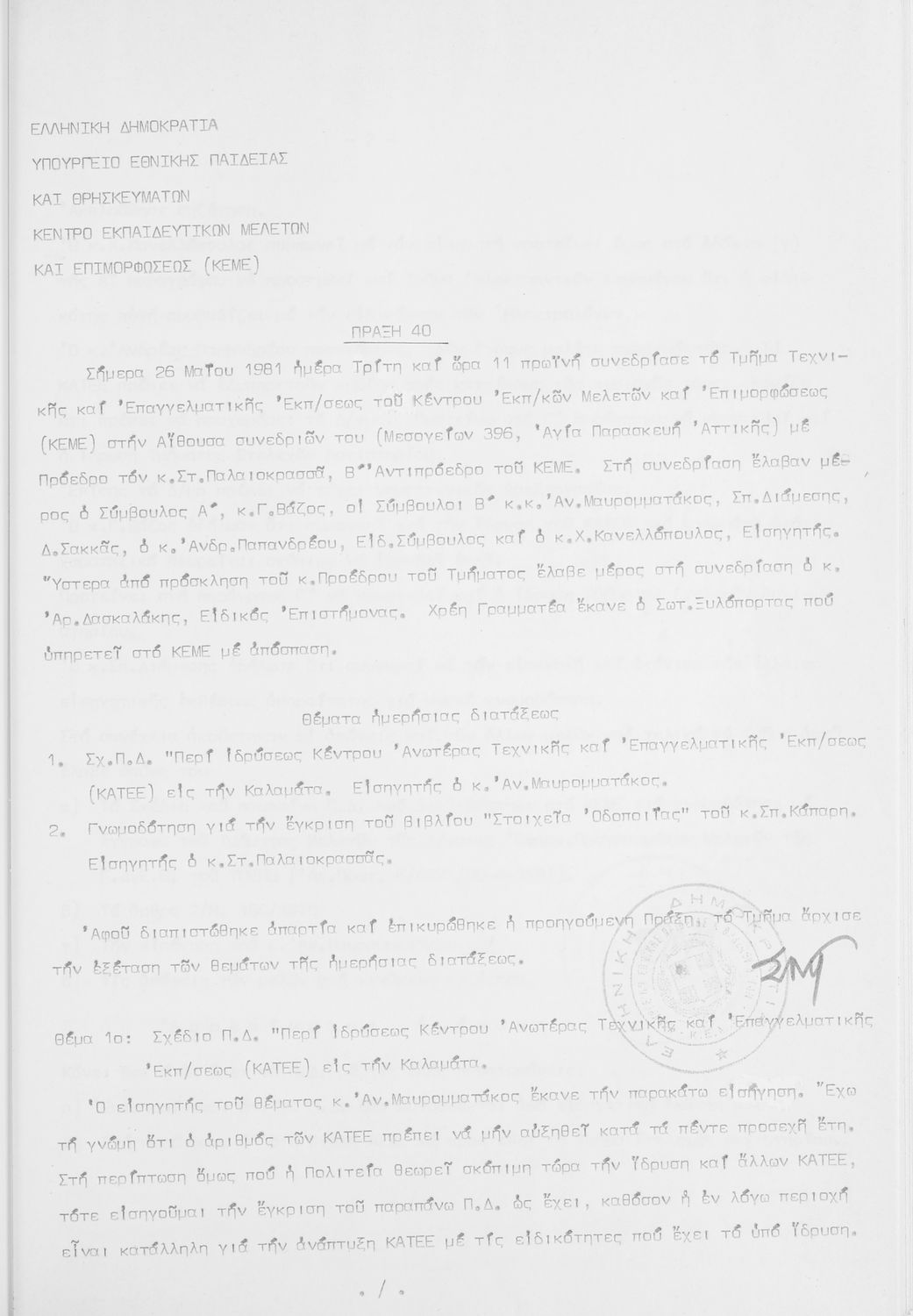 Τίτλος: Τμήμα Τεχνικής και Επαγγελματικής Εκπαίδευσης