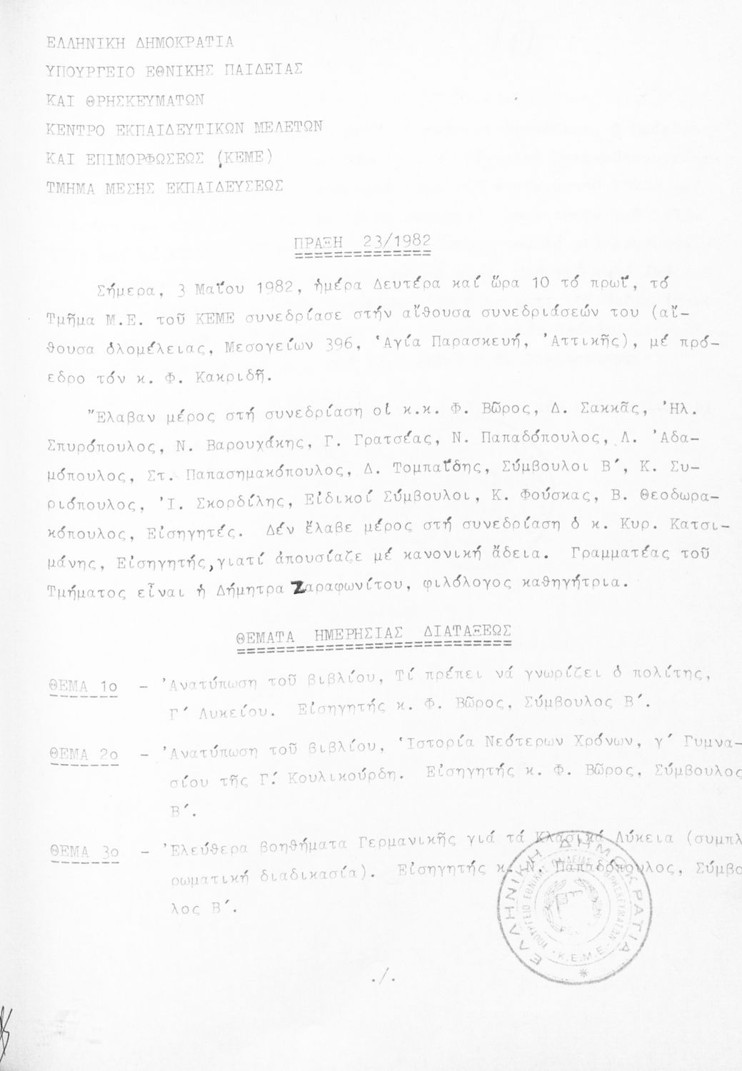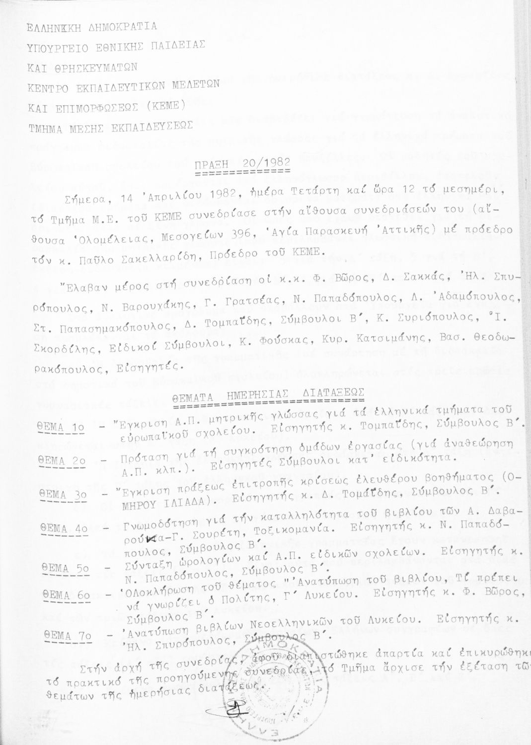 Κωδικός αναγνώρισης: 1982-0110 Τίτλος: Τμήμα Μέσης Μέγεθος και υπόστρωμα: Πρακτικά κεμε, 305 σελίδες. |