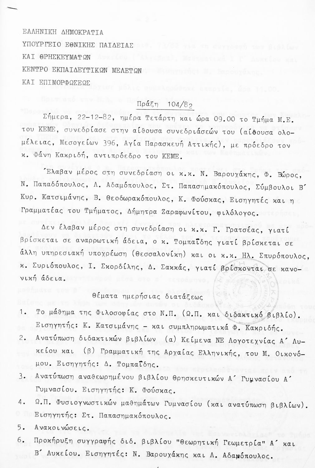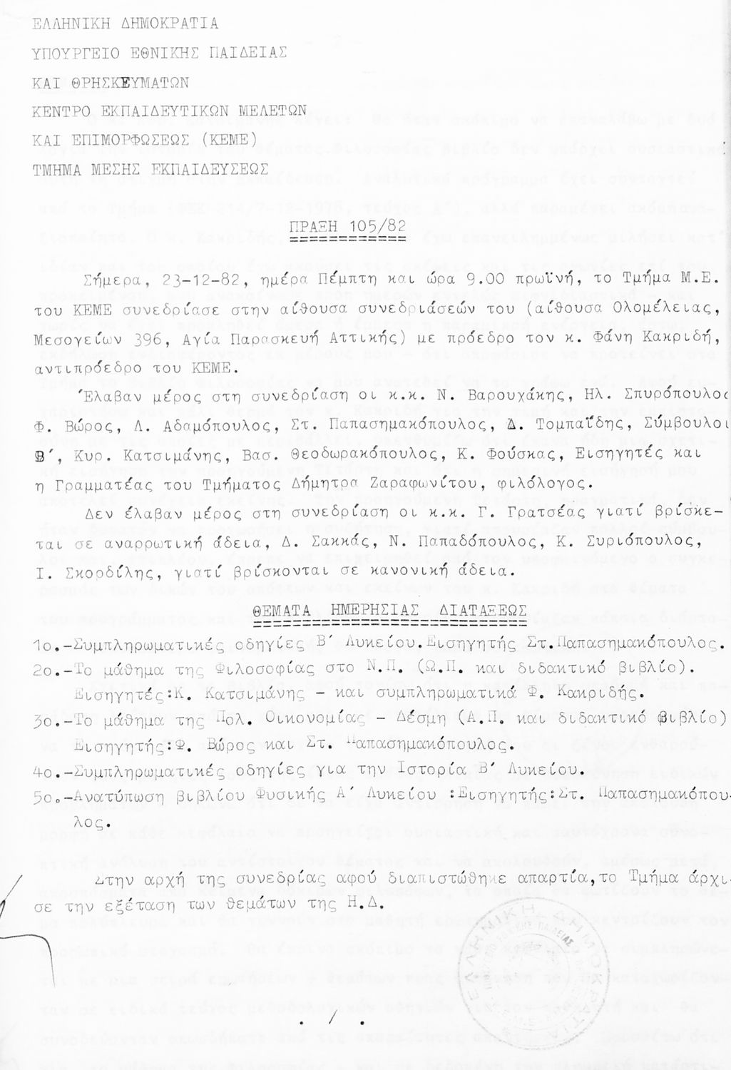 Κωδικός αναγνώρισης: 1982-0112 Τίτλος: Τμήμα Μέσης Μέγεθος και υπόστρωμα: Πρακτικά κεμε, 429 σελίδες. |