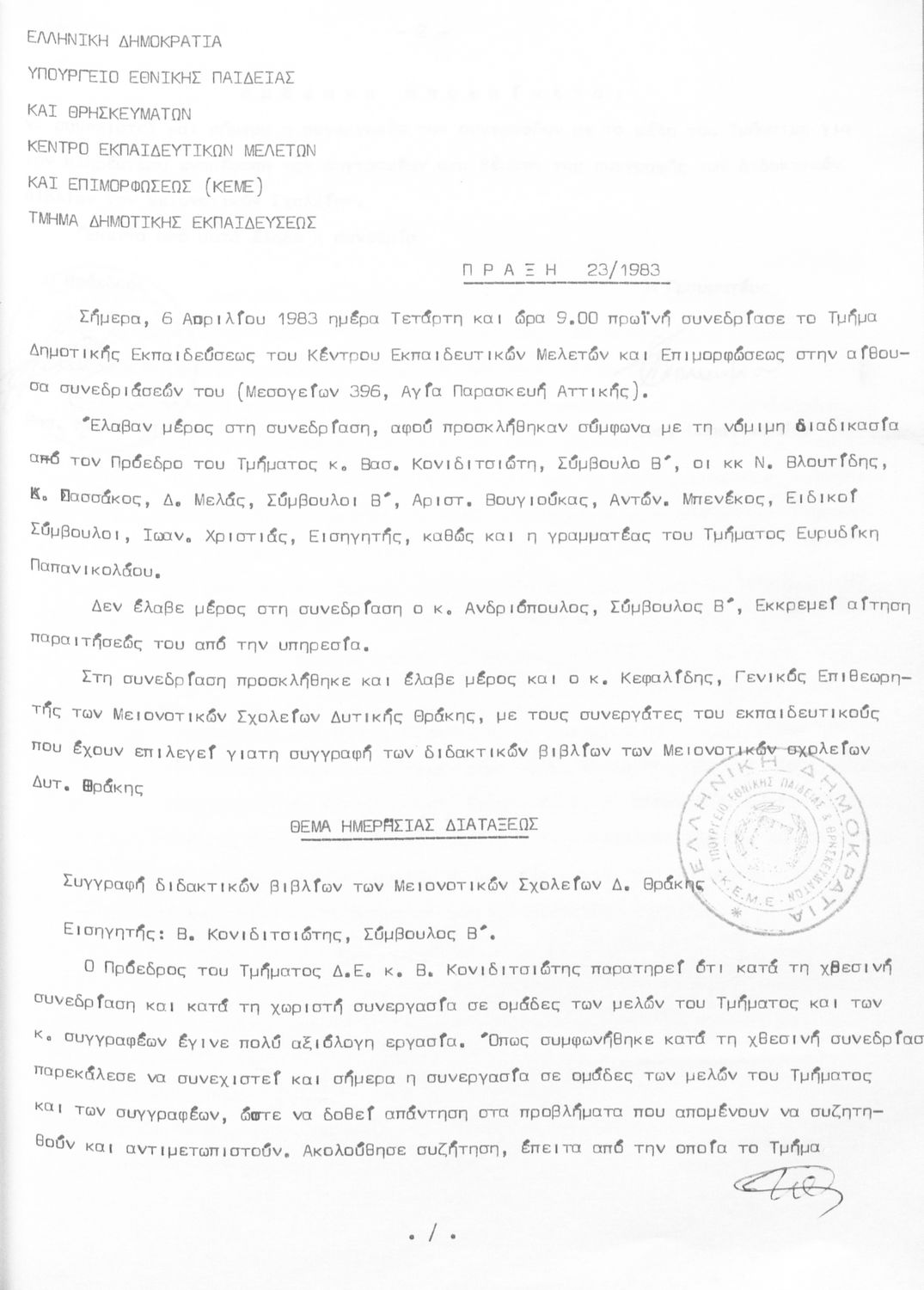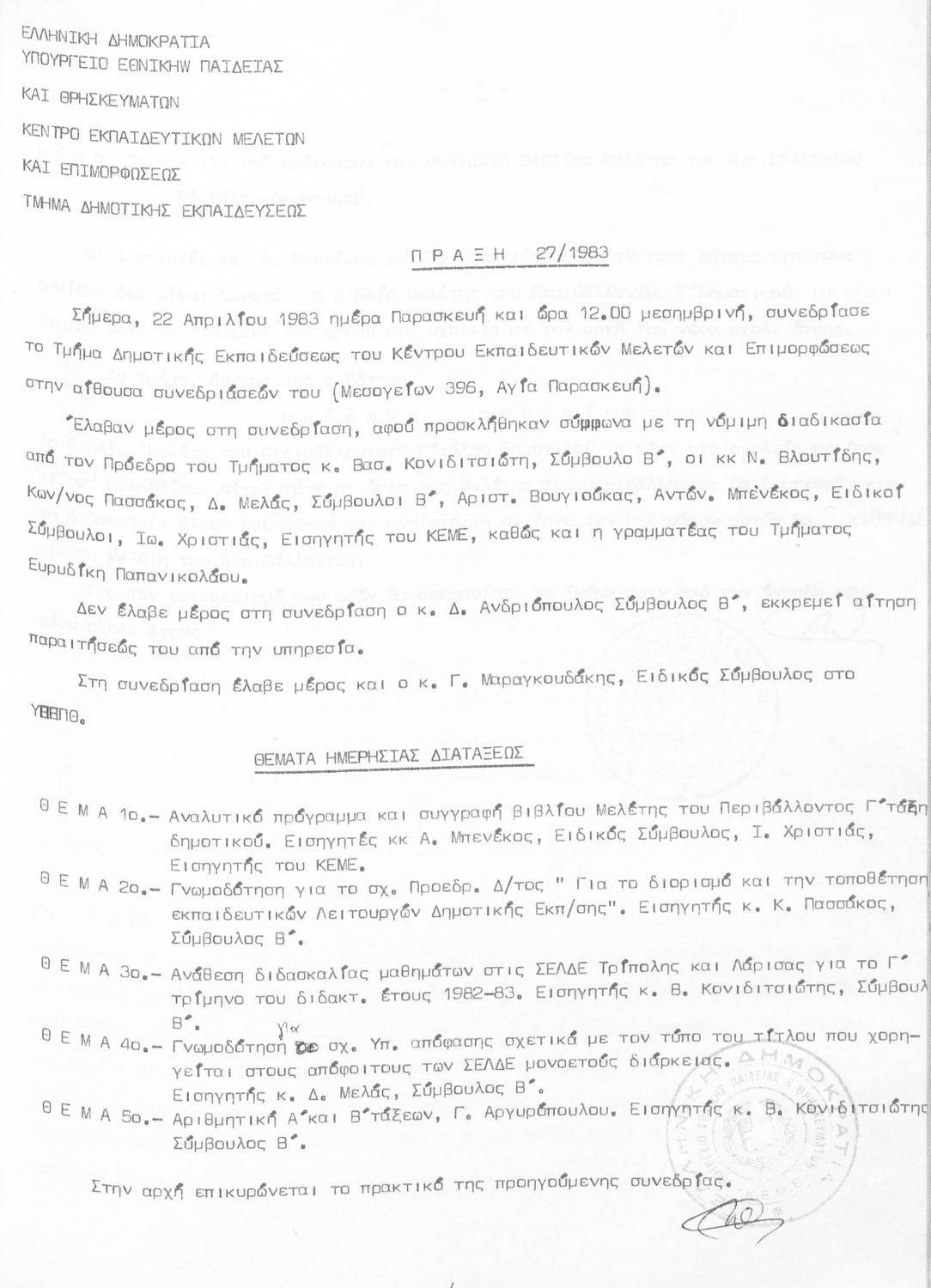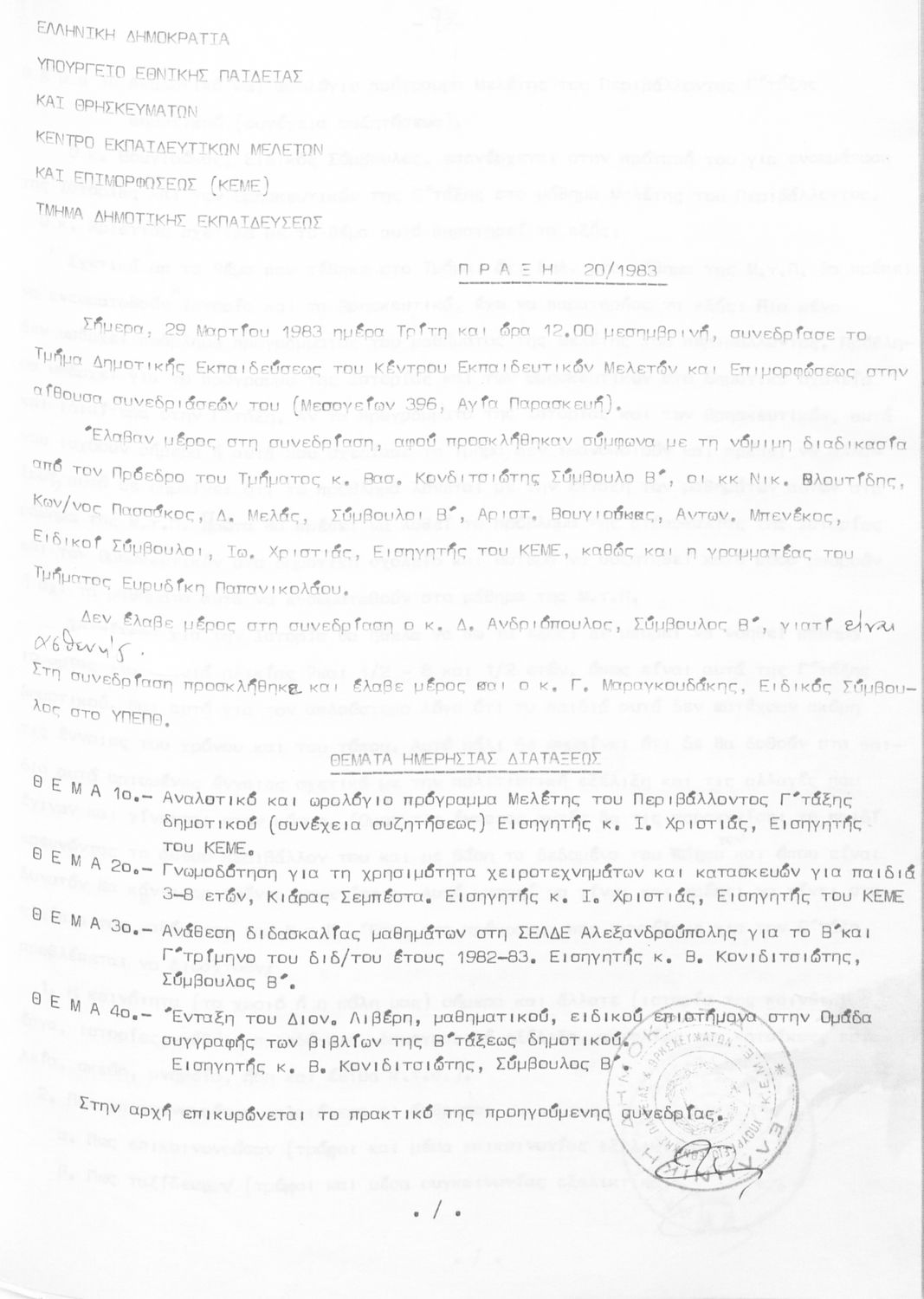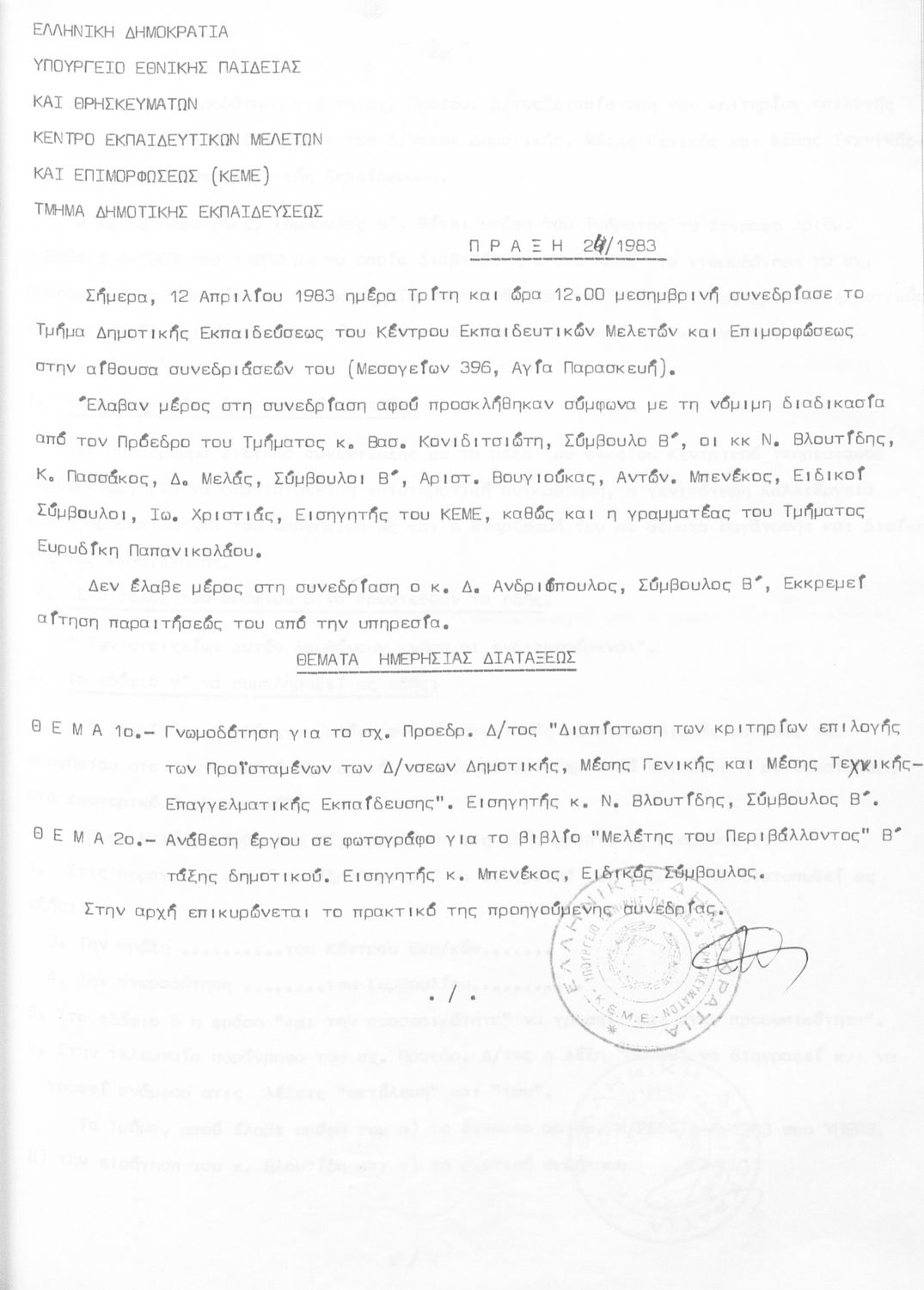 Κωδικός αναγνώρισης: 1983-0129 Τίτλος: Τμήμα Δημοτικής Εκπαίδευσης Μέγεθος και υπόστρωμα: Πρακτικά κεμε, 481 σελίδες. |