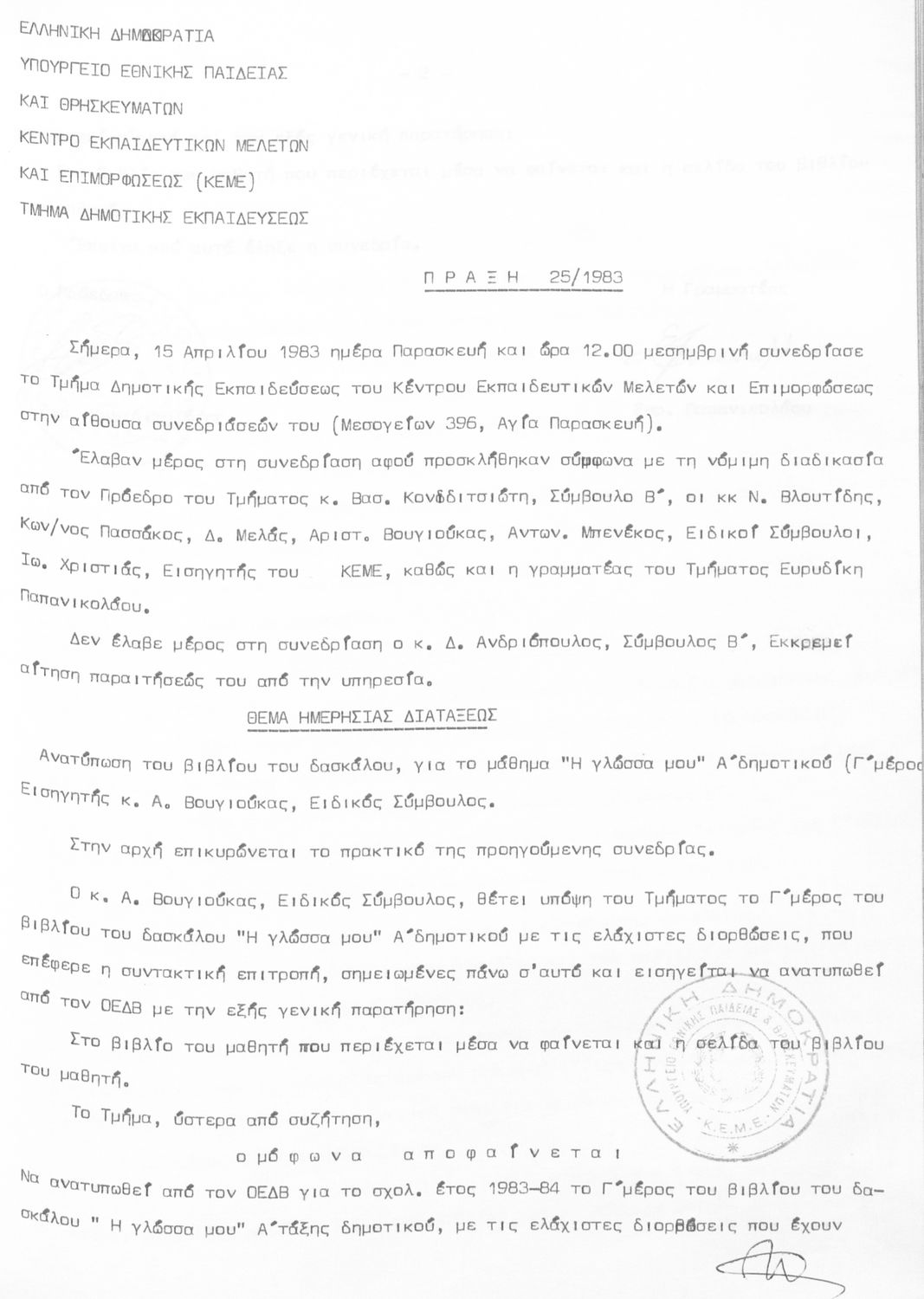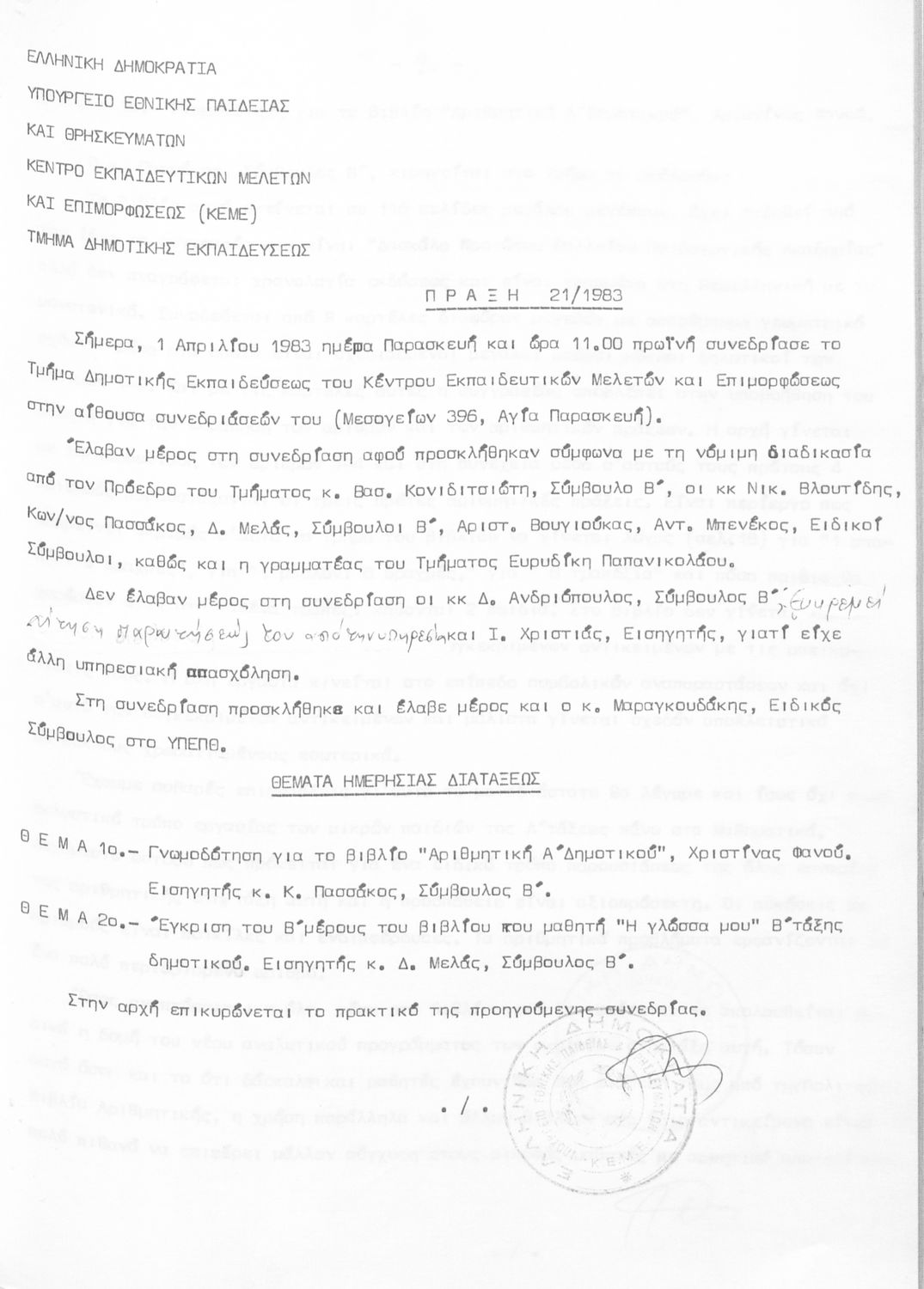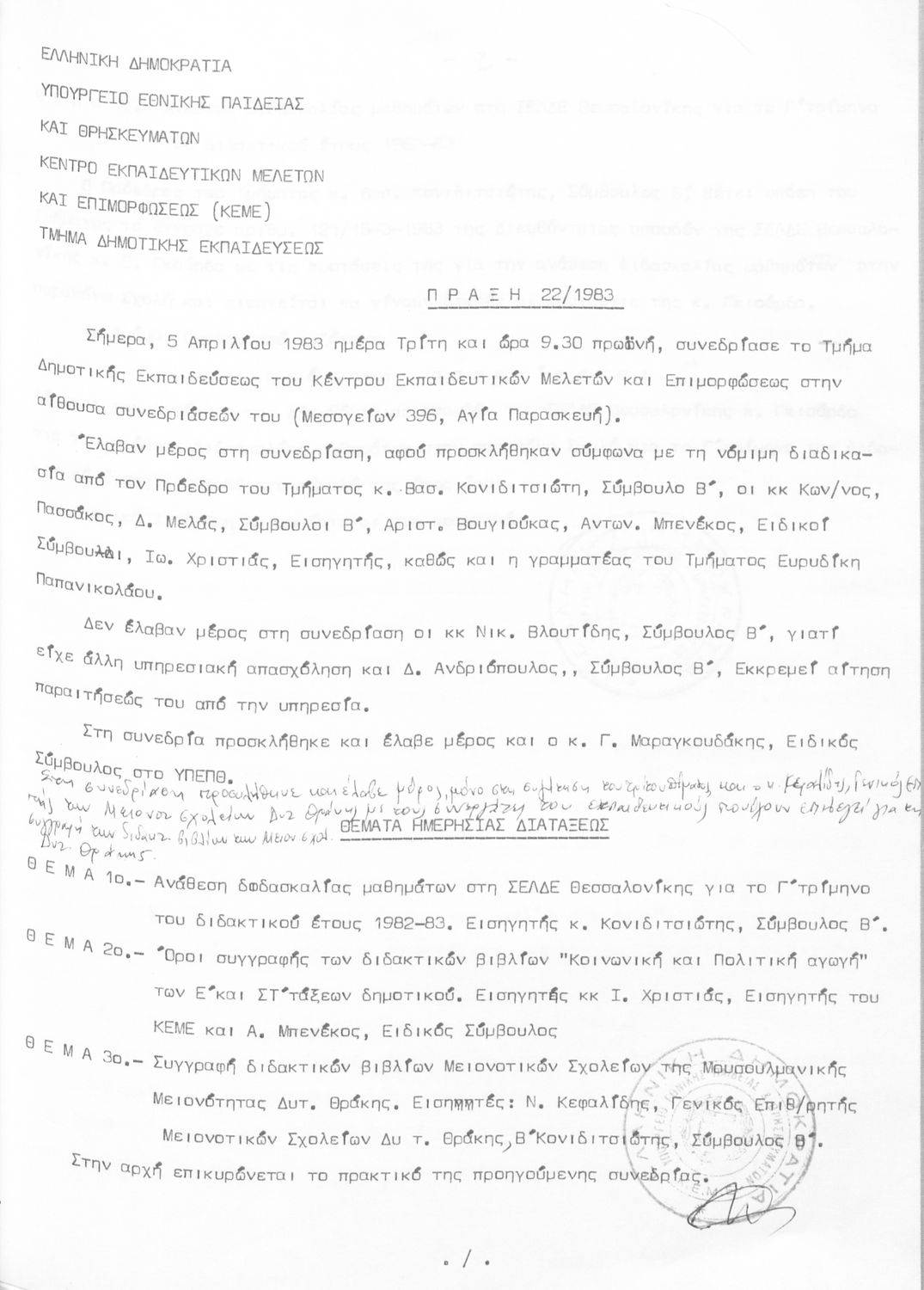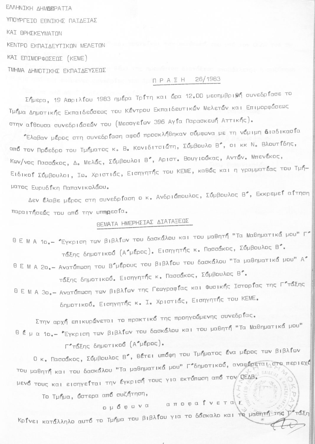 Κωδικός αναγνώρισης: 1983-0129 Τίτλος: Τμήμα Δημοτικής Εκπαίδευσης Μέγεθος και υπόστρωμα: Πρακτικά κεμε, 481 σελίδες. |