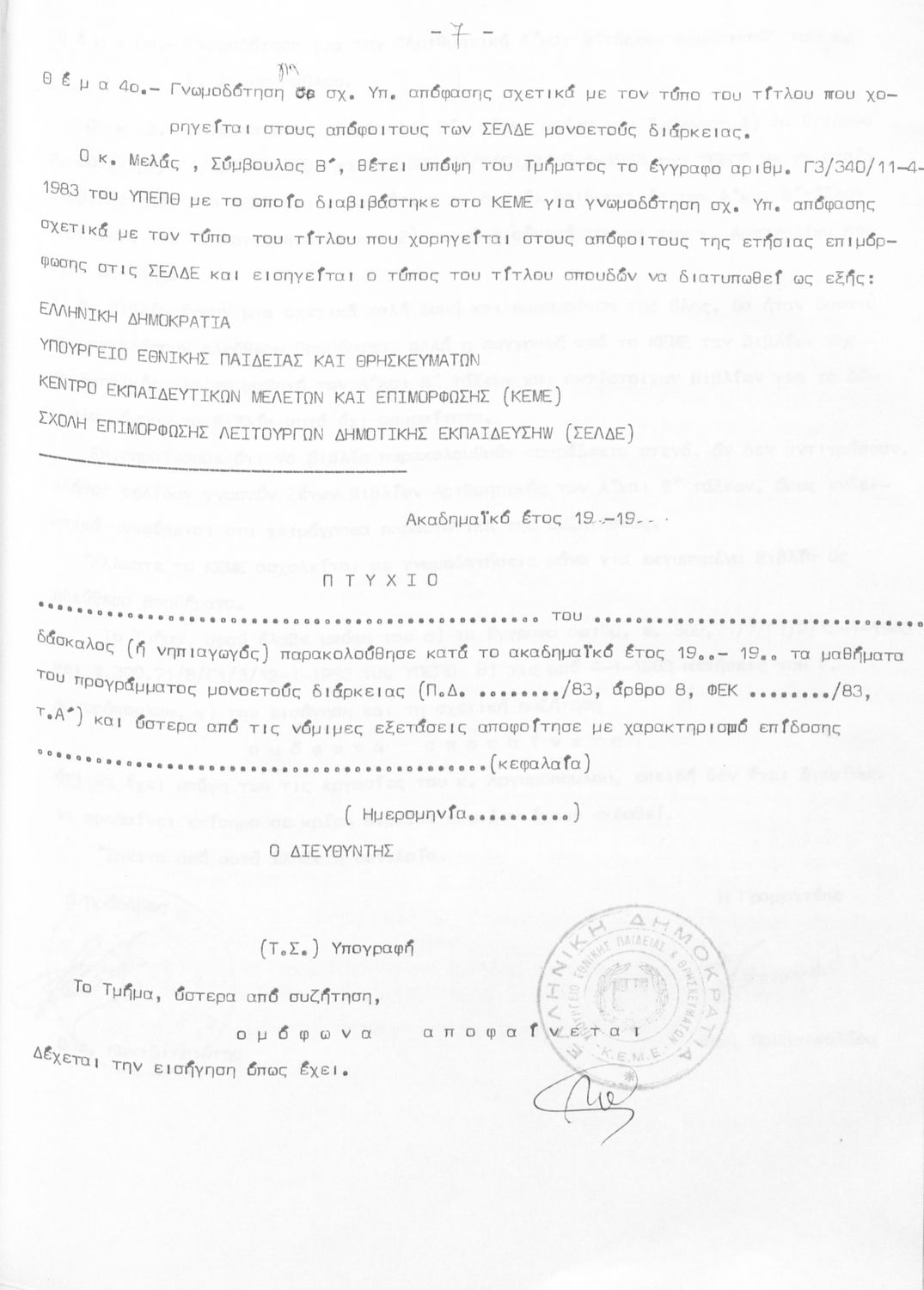 Τίτλος: Τμήμα Δημοτικής Εκπαίδευσης