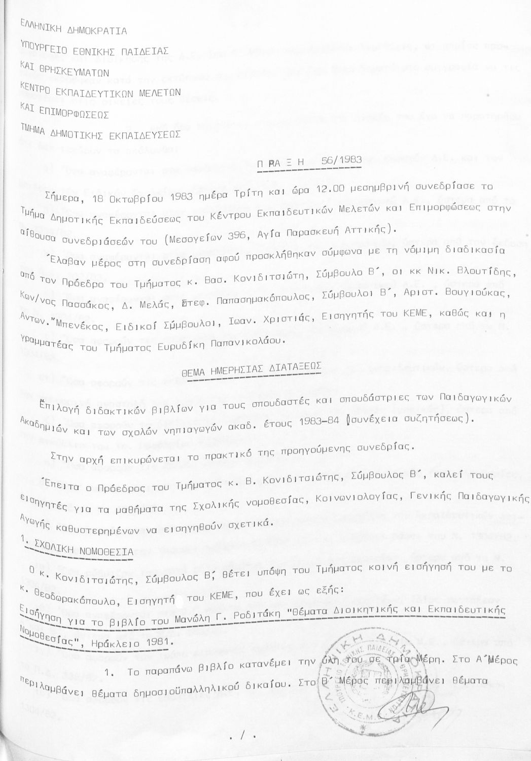 Κωδικός αναγνώρισης: 1983-0129 Τίτλος: Τμήμα Δημοτικής Εκπαίδευσης Μέγεθος και υπόστρωμα: Πρακτικά κεμε, 481 σελίδες. |