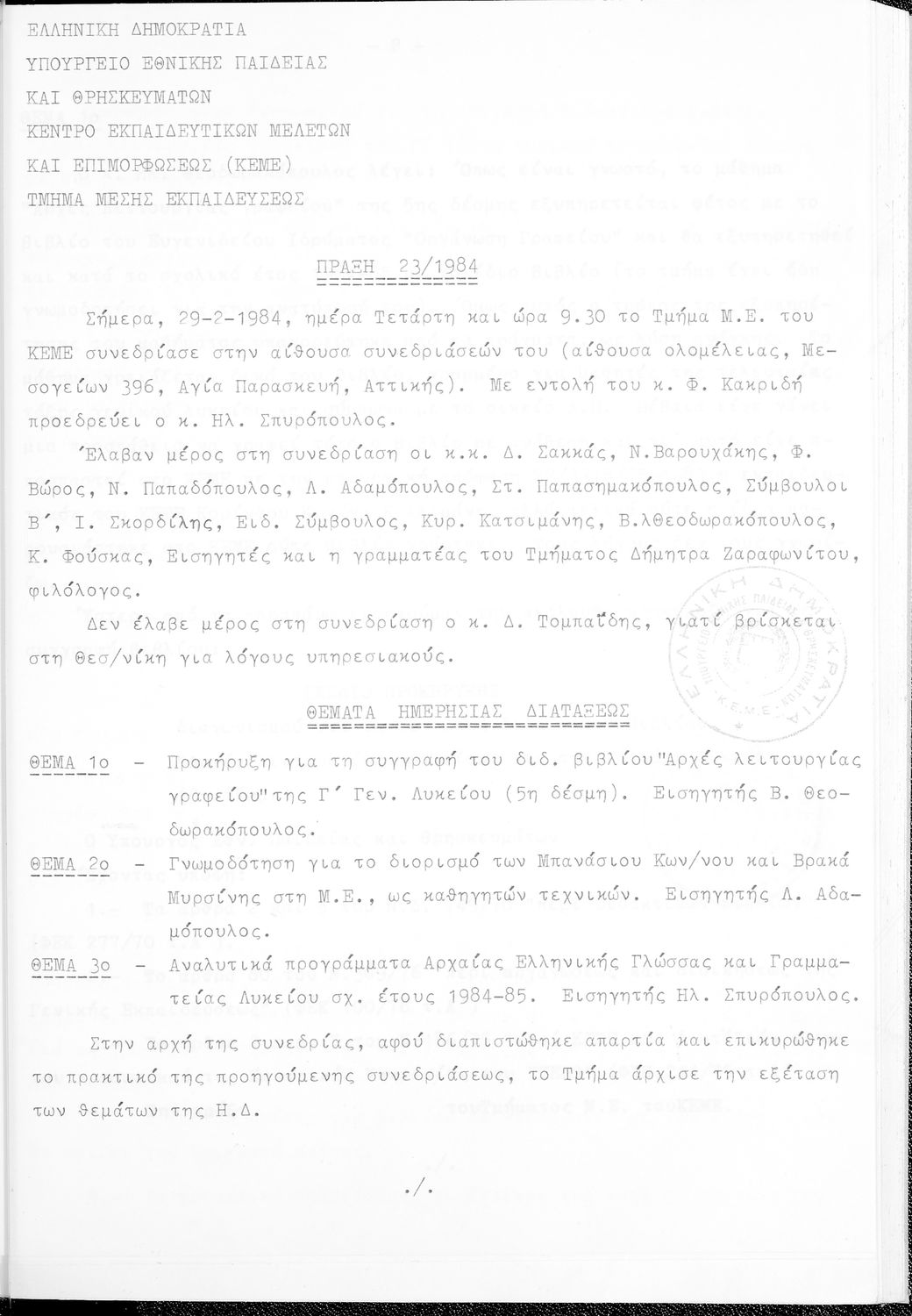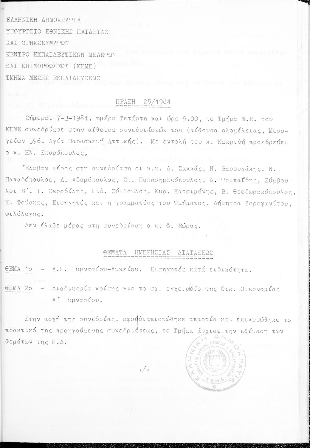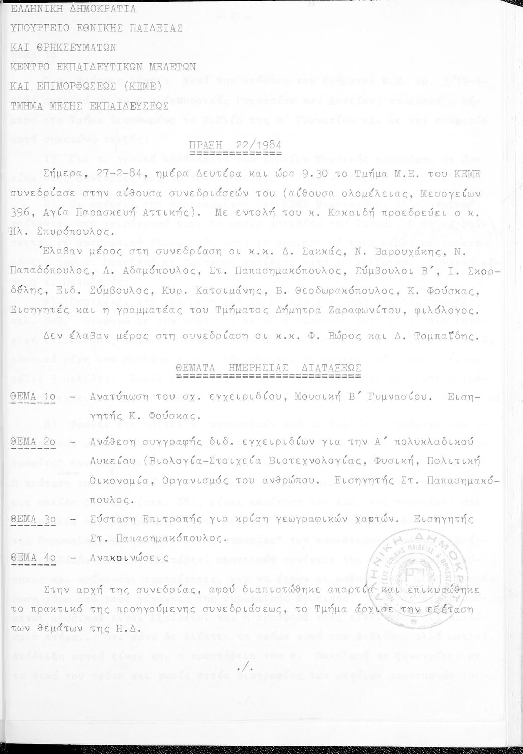 Κωδικός αναγνώρισης: 1984-0116 Τίτλος: Τμήμα Μέσης Μέγεθος και υπόστρωμα: Πρακτικά κεμε, 402 σελίδες. |